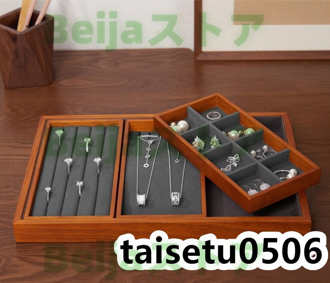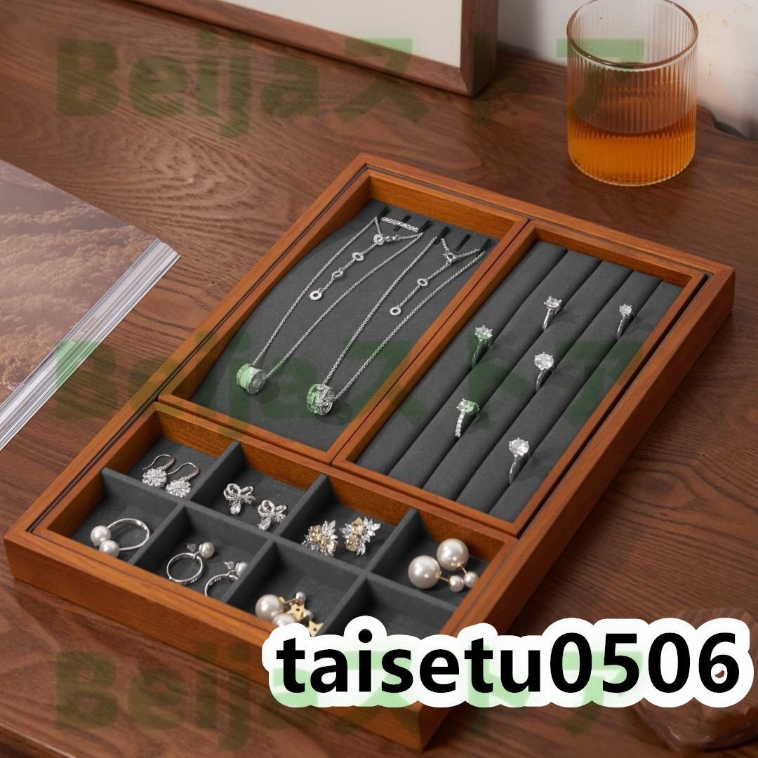 無垢材 ハイエンド ダークグレー アクセサリー ディスプレイ トレー 収納 ピアス イヤリング ネックレス ブレスレット 北欧スタイル ZCL612