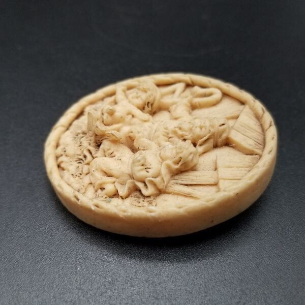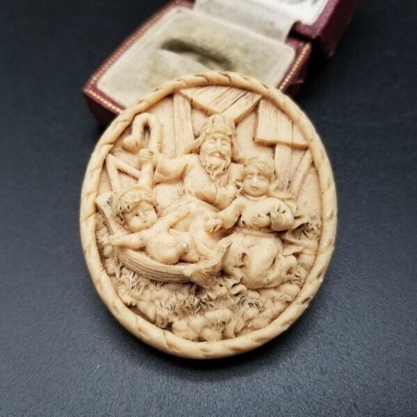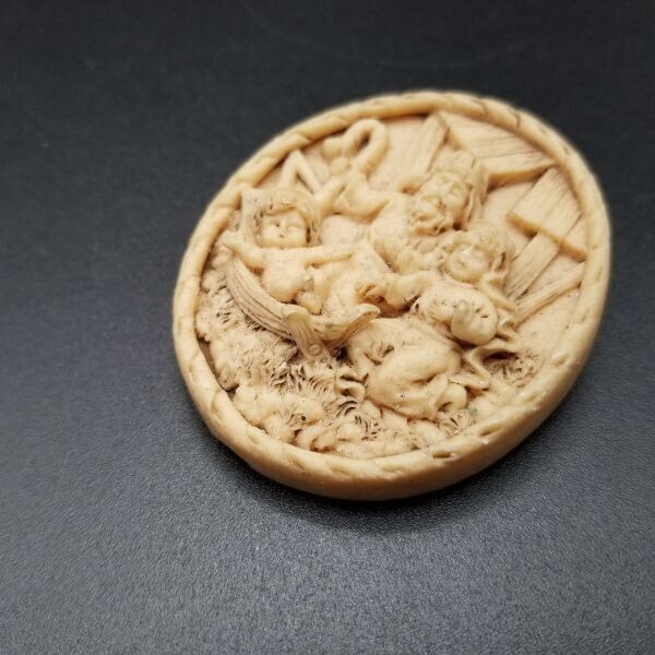 赤ん坊 人々の生活 彫刻 ヴィンテージ ブローチ オーバル 大ぶり 絵のようなアクセサリー YS9818