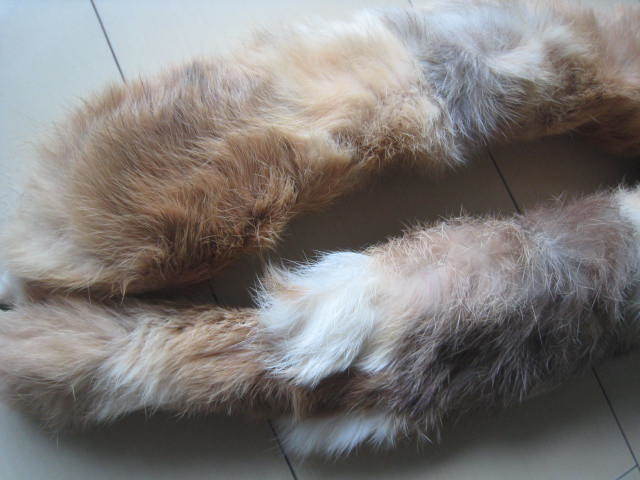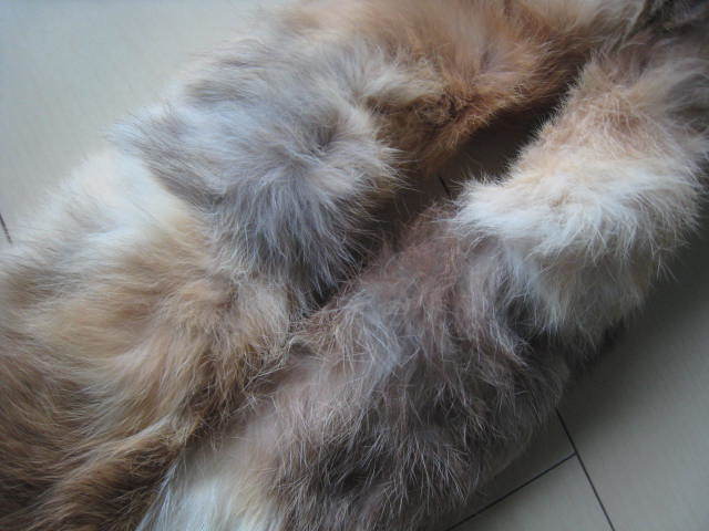 即決★未使用 リアルファー フォックス キツネ/襟巻 ティペット マフラー/長さ約82cm 幅約9cm/茶×グレー×ホワイト