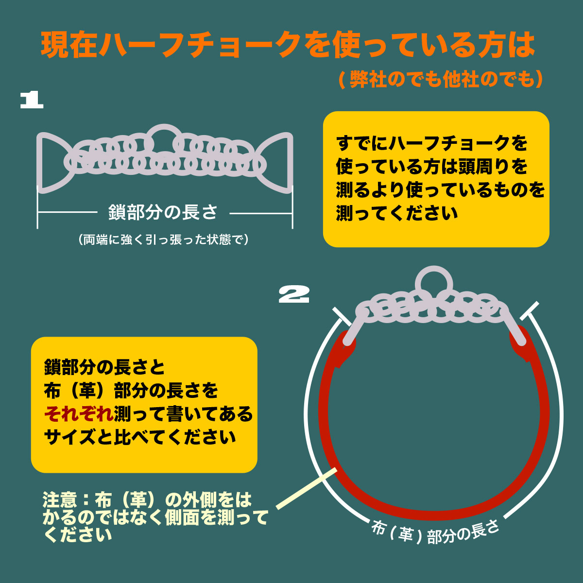中形犬用の2cm幅のハーフチョークです。調節できますがだいたいこのサイズでお願いします