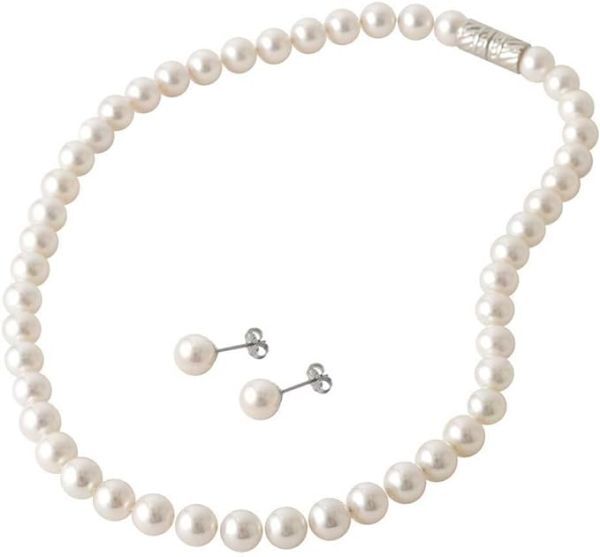 まつよ 花珠貝パール 真珠 10mm 結婚式 冠婚葬祭 卒業式 入学式 アクセサリー 45cm ピアス セット【ホワイトカラー/マグネット式】