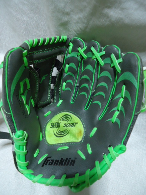 米国にて、USED物として、購入致しました。軟式用。年代不明。FRANKLIN社製。ベトナム製。合皮・ナイロン製。グレー・緑色。右利き左手用。サイズは、縦約24センチ・広げたぐるり約35センチです。USED物なので、少々キズ・汚れあります。USED物なので、ご理解のある方・24時間以内に、お手続き入力後、期限内にかんたん決済、出来る方のみ、ご入札をお願い致します。この商品は、1点物です。 ※※発送方法・送料は、特定記録付き定形外郵便(追跡可能・補償無し)ですと、870円又は、簡易書留郵便(追跡可能・手渡し配達・補償有り)ですと、1010円又は、ゆうパック送料着払い便(持ち込み割引有り・追跡可能・手渡し配達・補償有り・かんたん決済時は、送料0円ですが、送料のみ到着時支払い)です。※※ ☆★★★★★☆送料は、変わりますが、何点でも、同梱包可能です。数点落札されましたら、まとめて取引を、選択お願いします。☆★★★★★☆