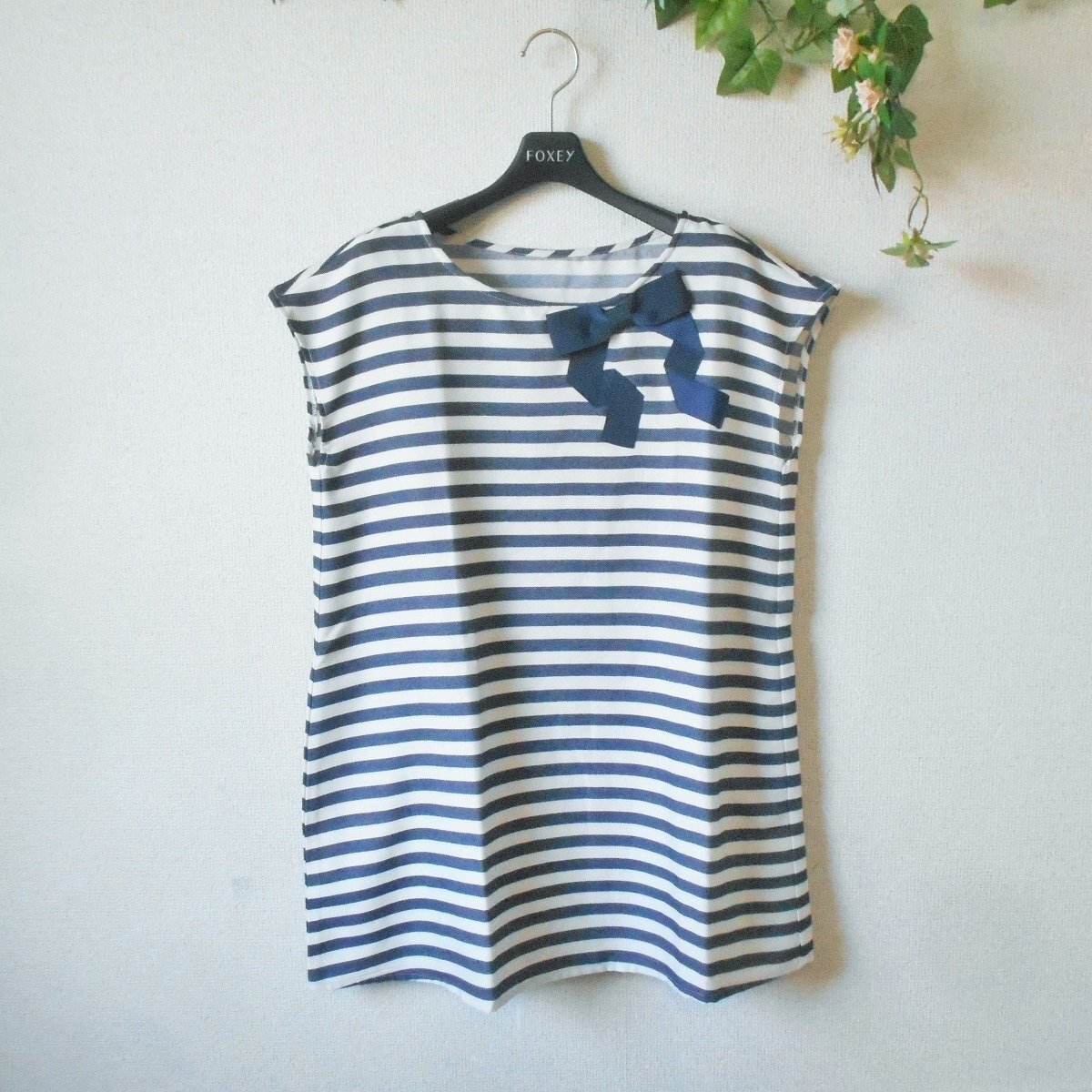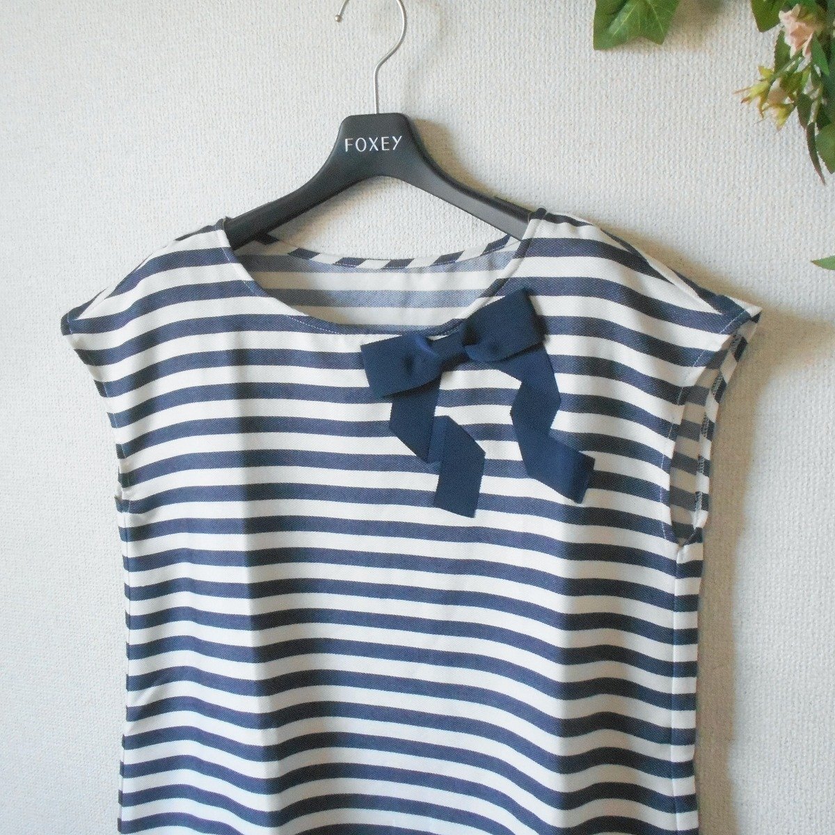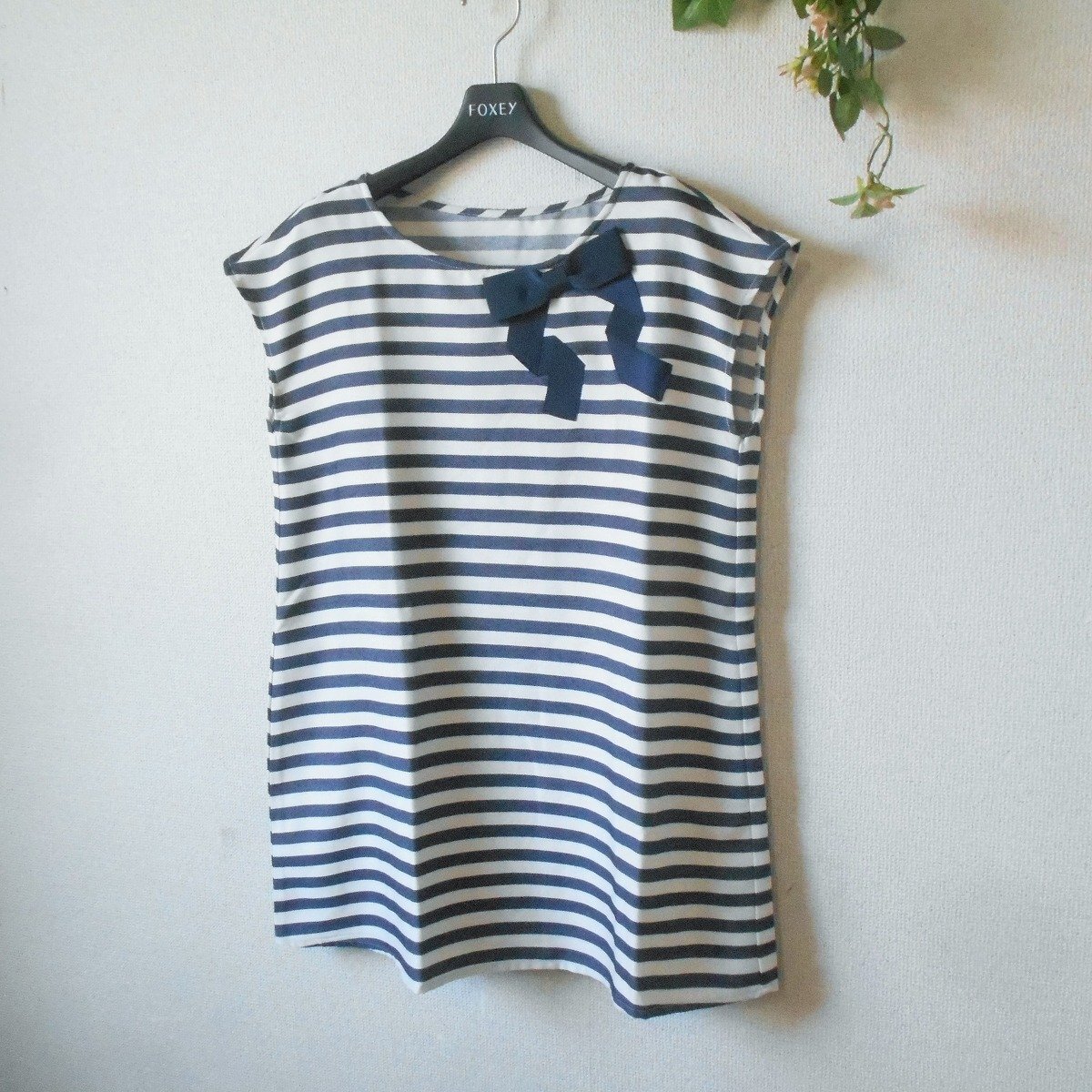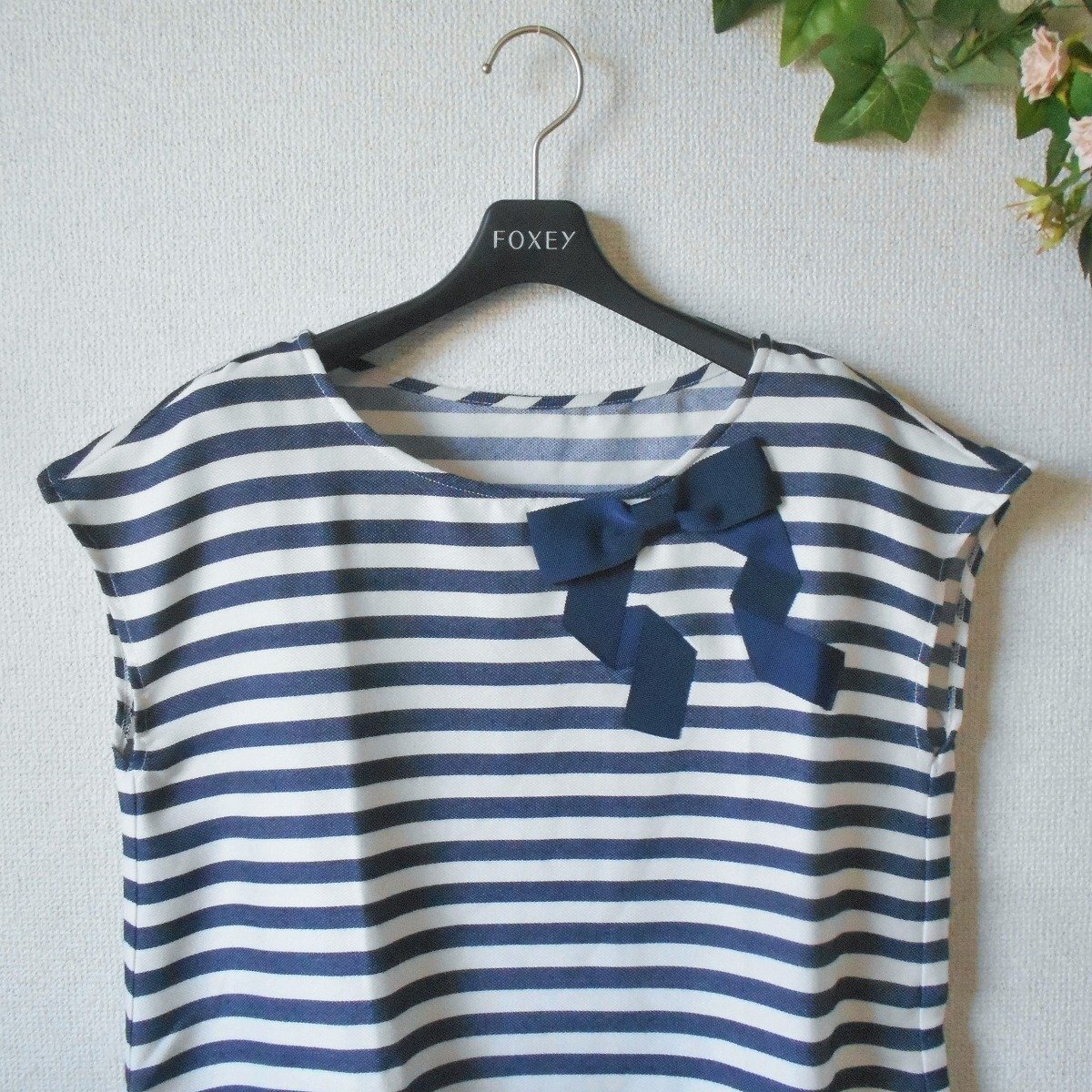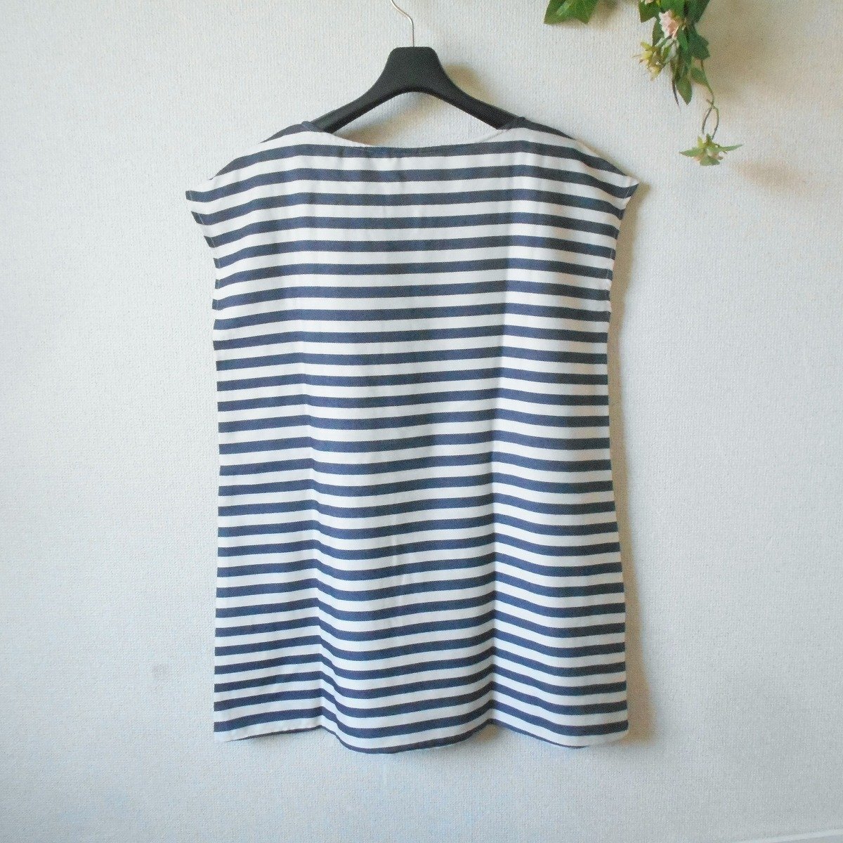 【ポイント】クチュールブローチのチュニックワンピースになります。お色はアイボリー系と濃いグレー系のボーダー柄で夏を中心に着ていただけるお品です。