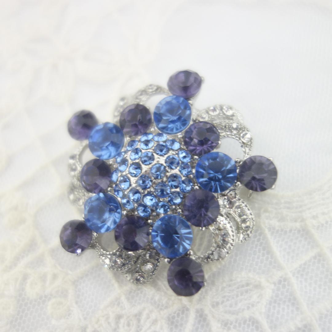 ヴィンテージ調 星・結晶 デコ アメジスト色&薄い青色輝石  ブローチ