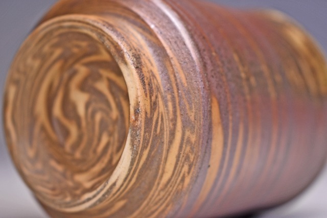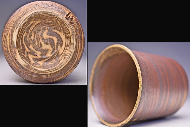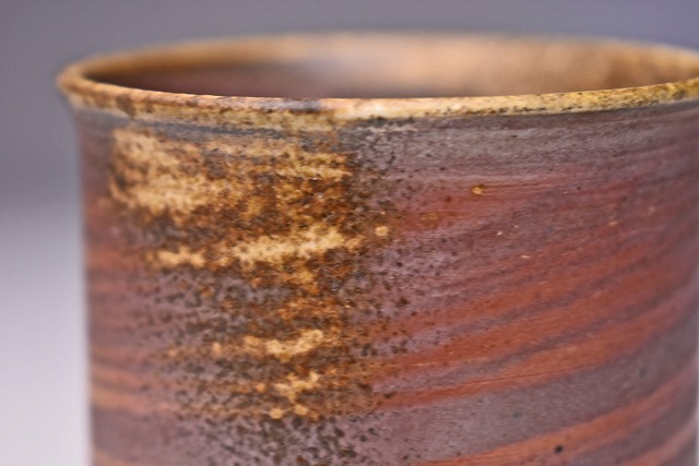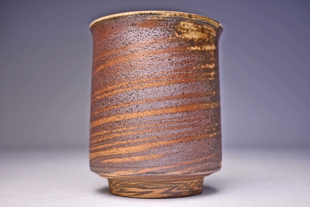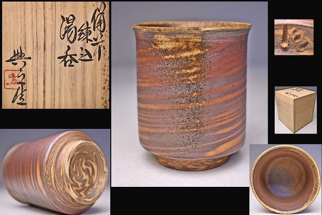 サイズは 74mmx高さ90mm です。 備前焼のベテラン 松井與之 氏の 作品です。 備前では珍しい 練込の お湯のみです。 宅配便80サイズにて発送します。 他にも多数出品してます。同梱対応いたします。