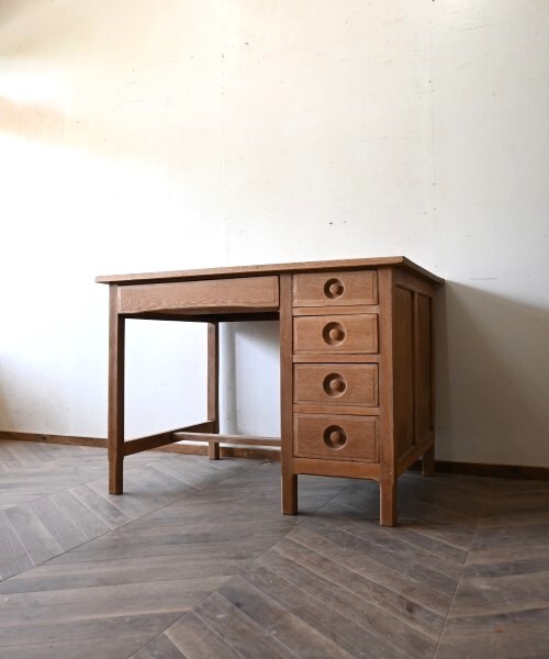 丸く彫ってある摘みが大変素敵な片袖机です。