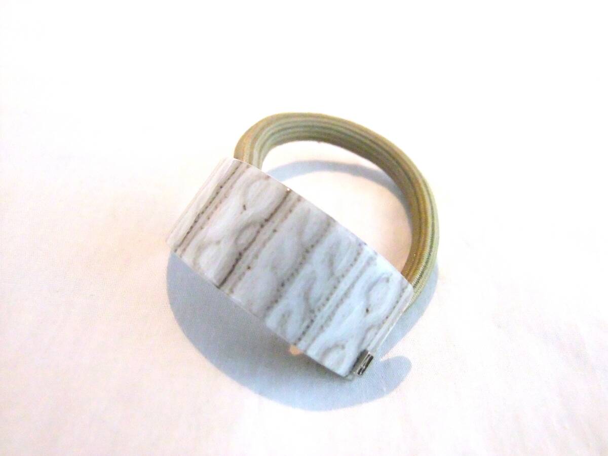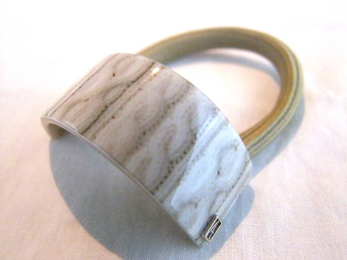 【NEW!!】アレクサンドル・ドゥ・パリ★ヘアゴム・ニット柄白