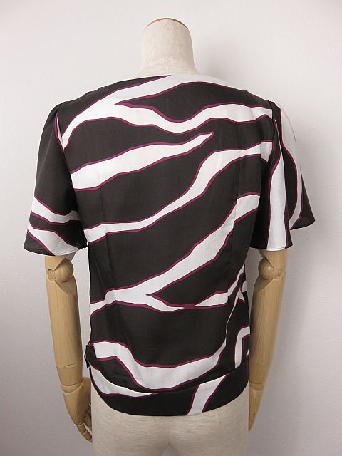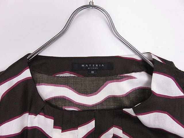 【送料無料】マテリア MATERIA 半袖カットソー 総柄 柔らかい素材 エンジ 茶 白 38/M