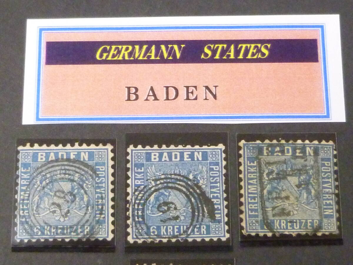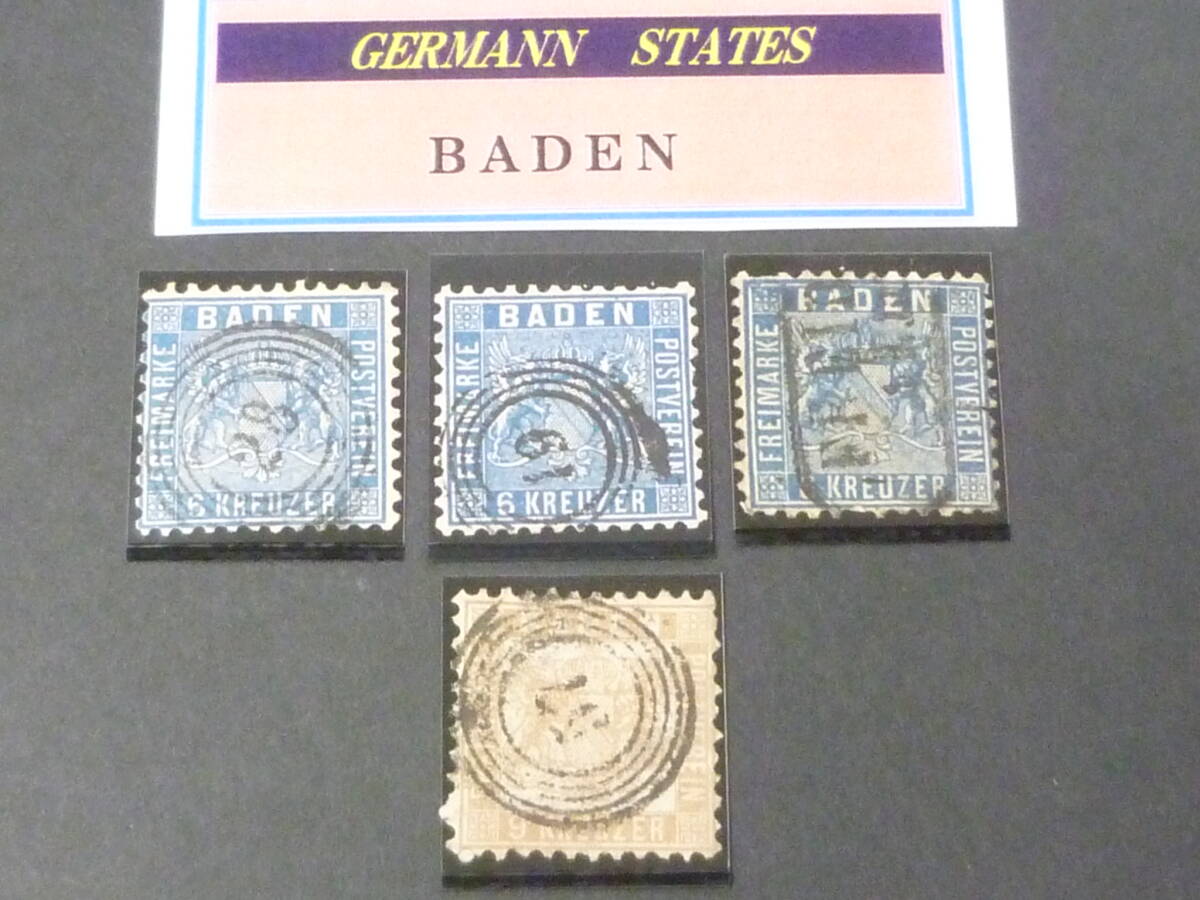 24L P №85 ドイツ切手 GERMANN STATES 1862年 BADEN SC#22・23 2種 計4枚 目打10 使用済 【SC評価 $100】