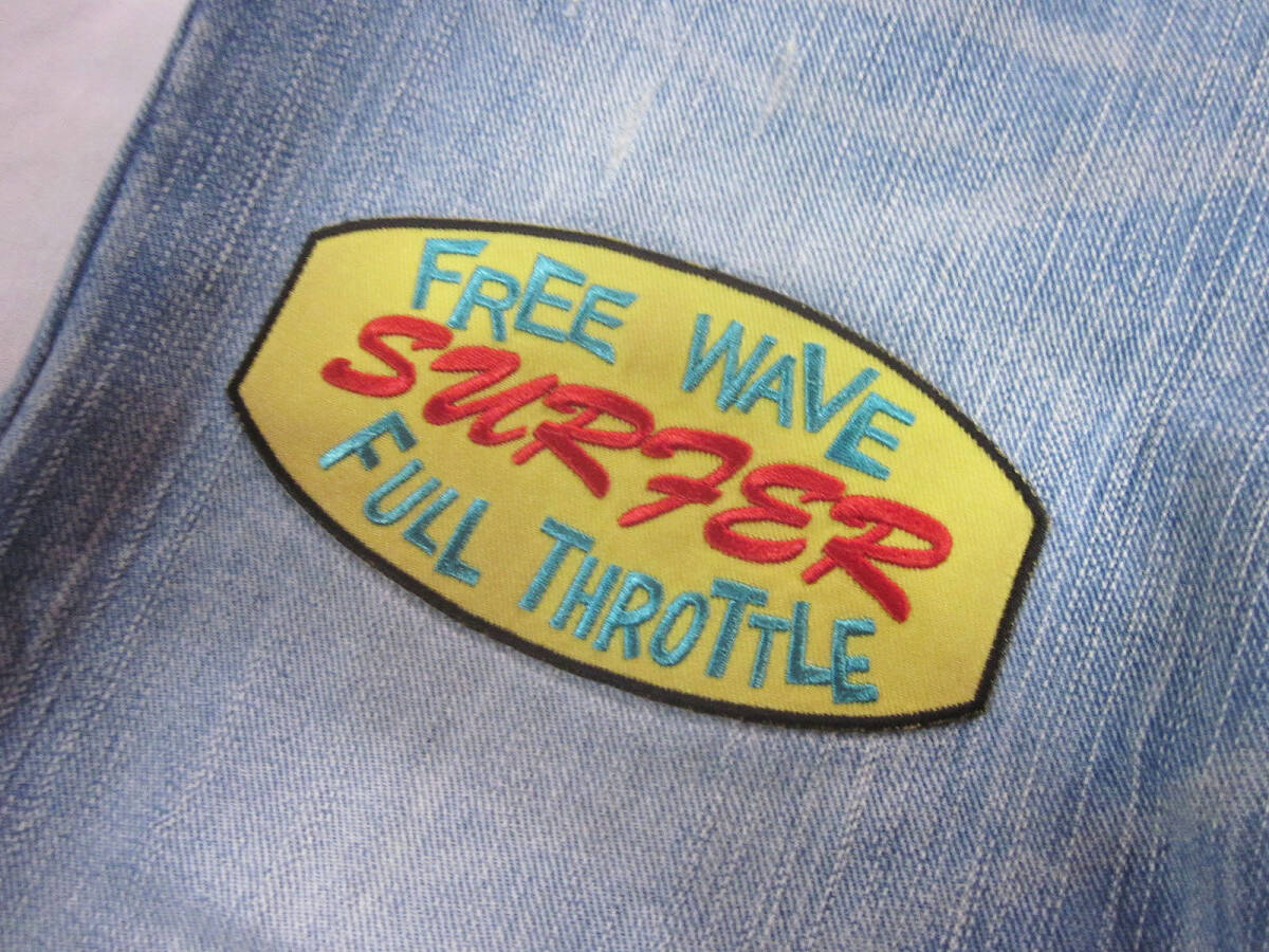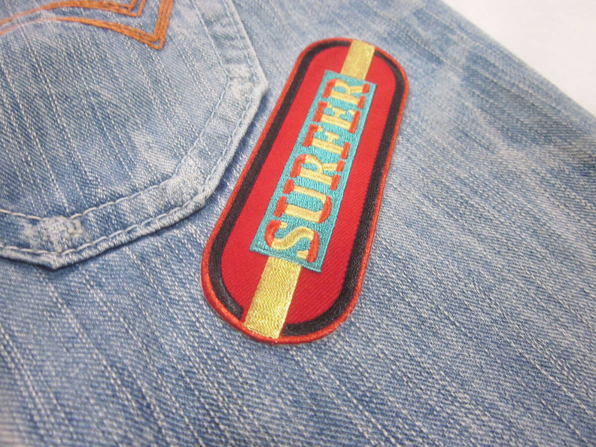 411XVS サーフ ワッペン シンチバック フレア ブーツカット デニム ジーンズ