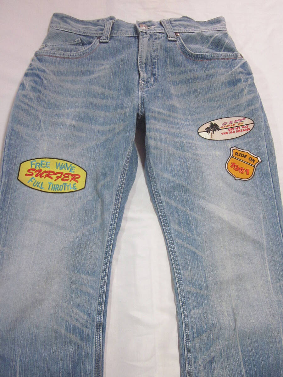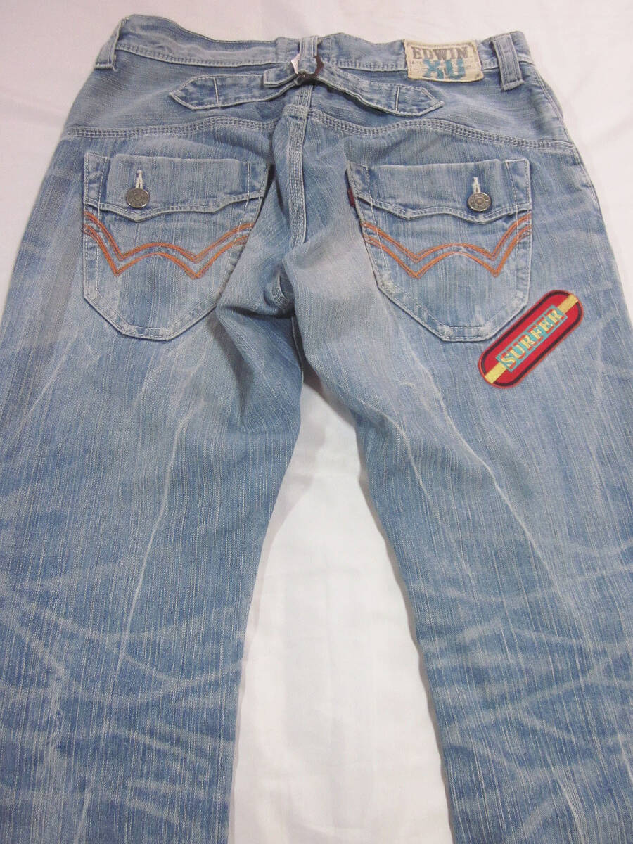 送料無料!! EDWIN エドウィン 411XVS サーフ ワッペン シンチバック フレア ブーツカット デニム ジーンズ 淡色 32 W約85CM