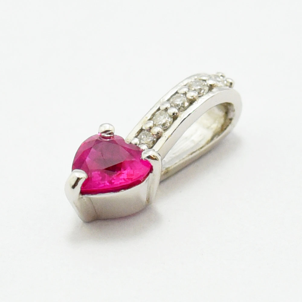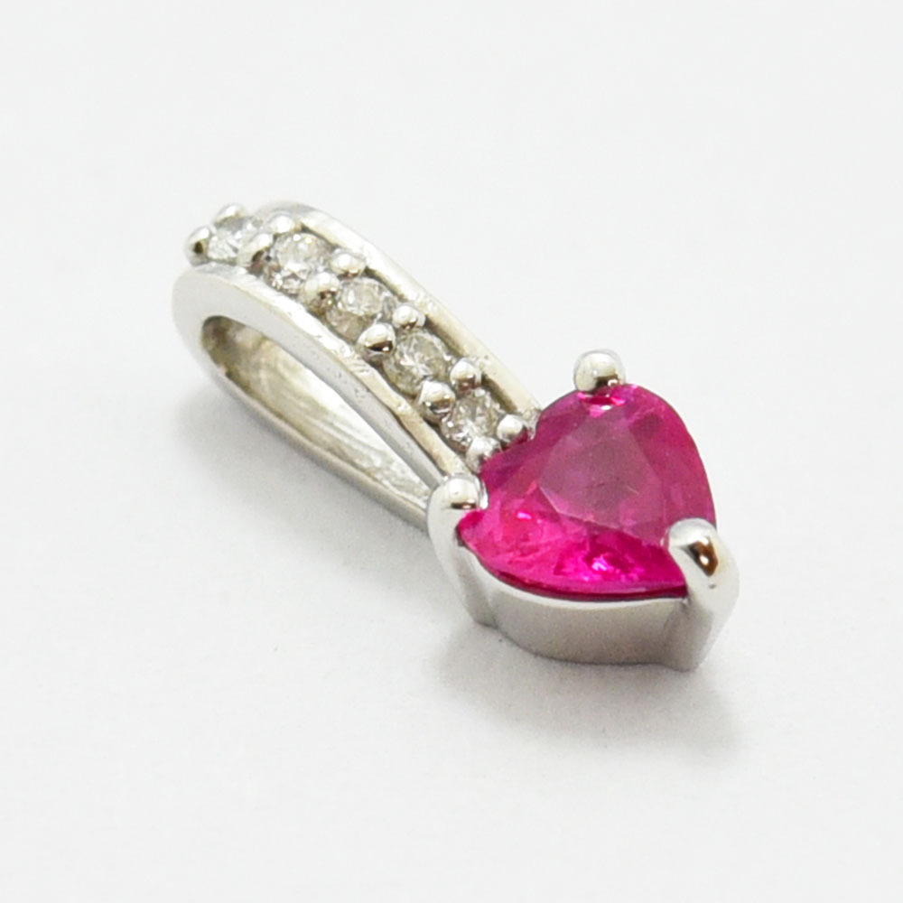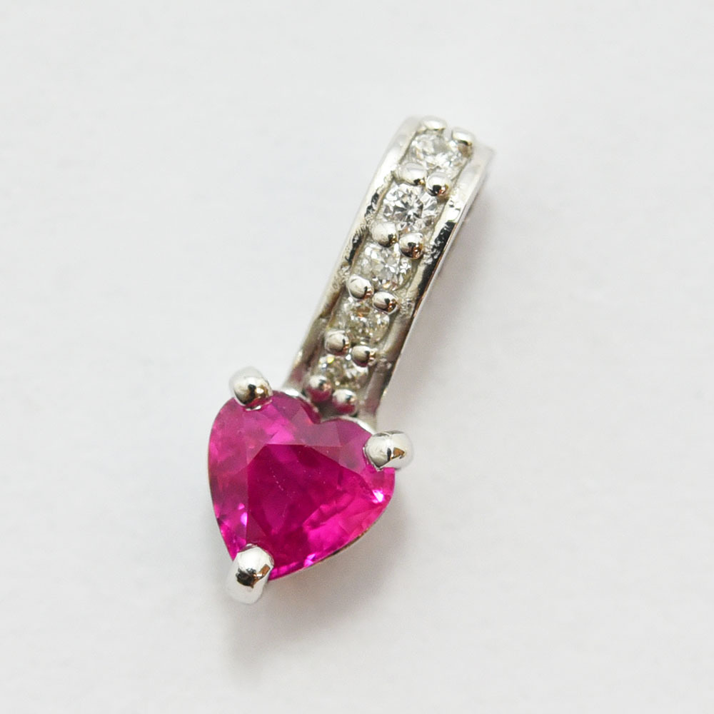 | ルビーにダイヤモンドが煌めきを添える、小ぶりで華やかなペンダントトップです。展示や保管による微細なキズがございます。 |