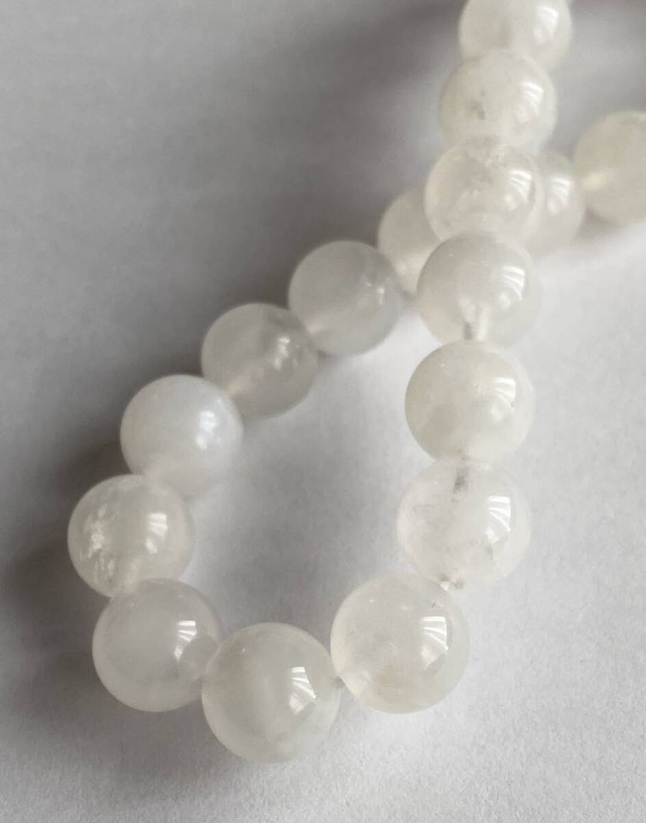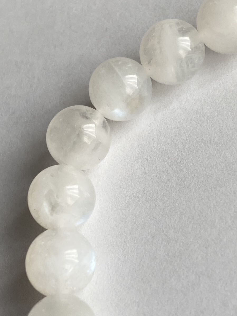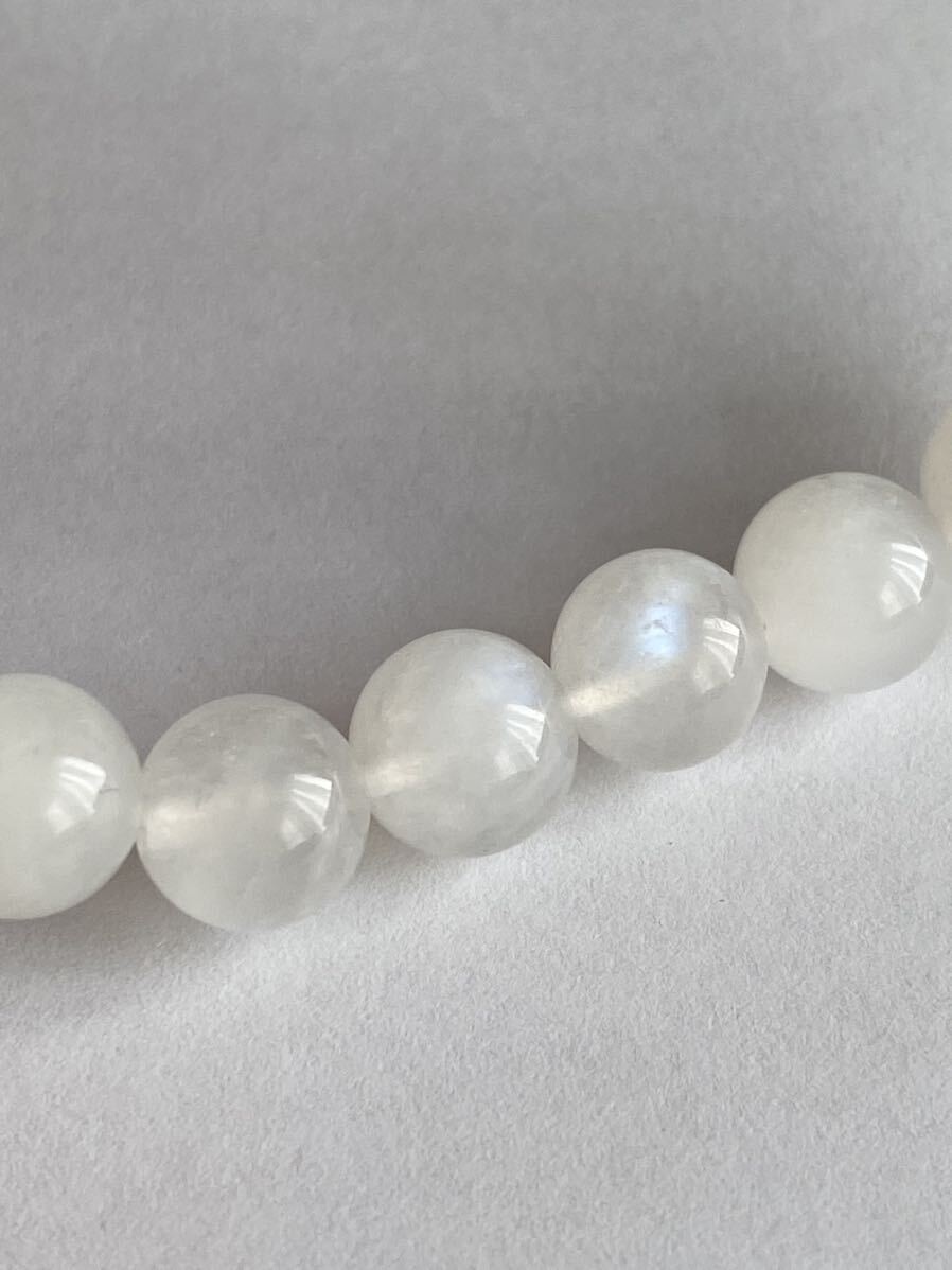 ◇ムーンストーン(月長石)月は夜空を輝かせ方向を教えることから「旅人の石」といわれ、旅の安全を導くお守りとして用いられてきました。感受性を豊かにし、直感力を高め、未来を予知する力を与えるといわれています。また、この石は「恋人たちの石」とも呼ばれ、愛をもたらす石としても知られています。恋人のいる人にはふたりの気持ちをつなぐパワーを授け、ケンカ別れをしても仲直りができるといわれています。気持ちをやさしく穏やかにする作用があり、ノイローゼから守ってくれるともいわれています。