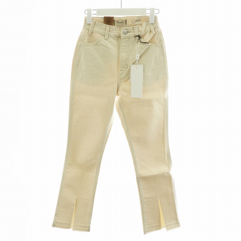未使用品 ヤヌーク YANUK × コエル COEL スリットデニムパンツ ジーンズ ジーパン ジッパーフライ 23 XS アイボリー