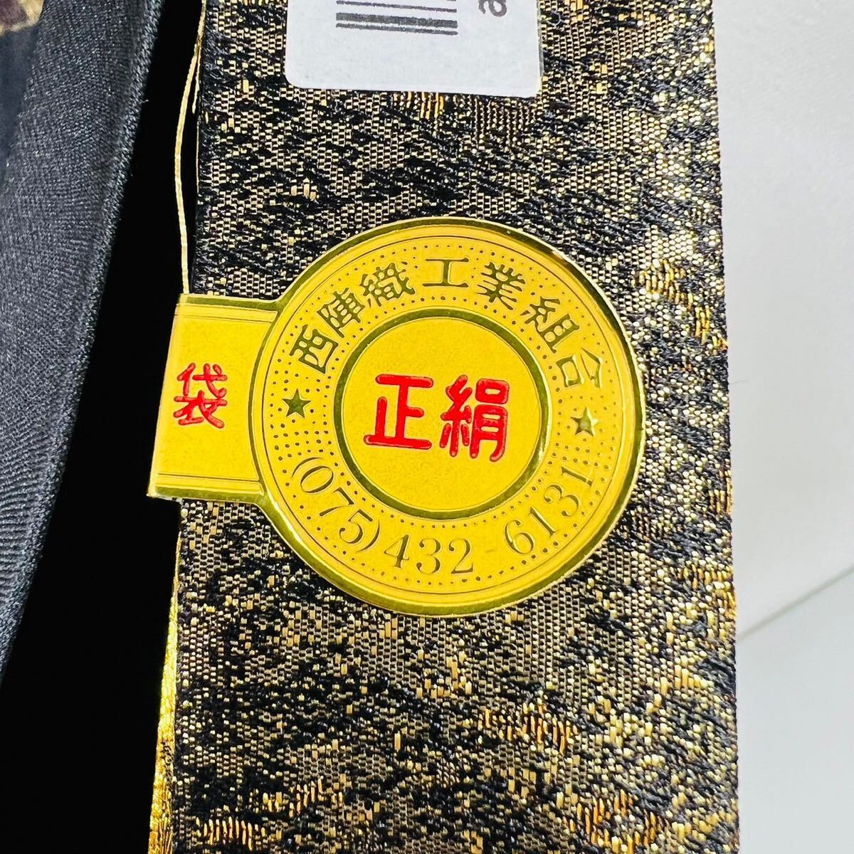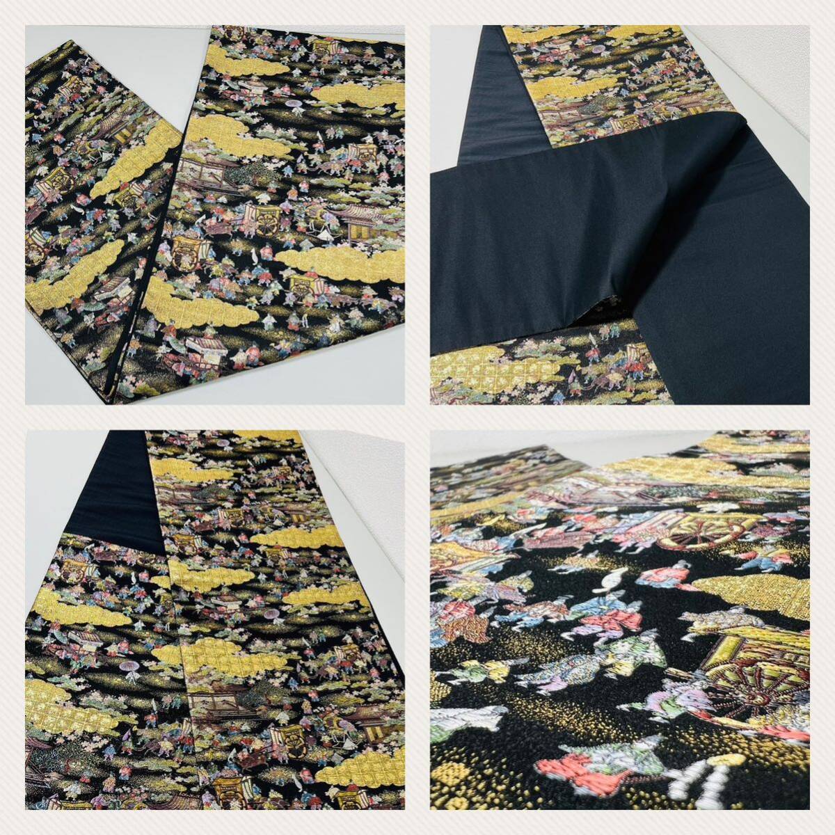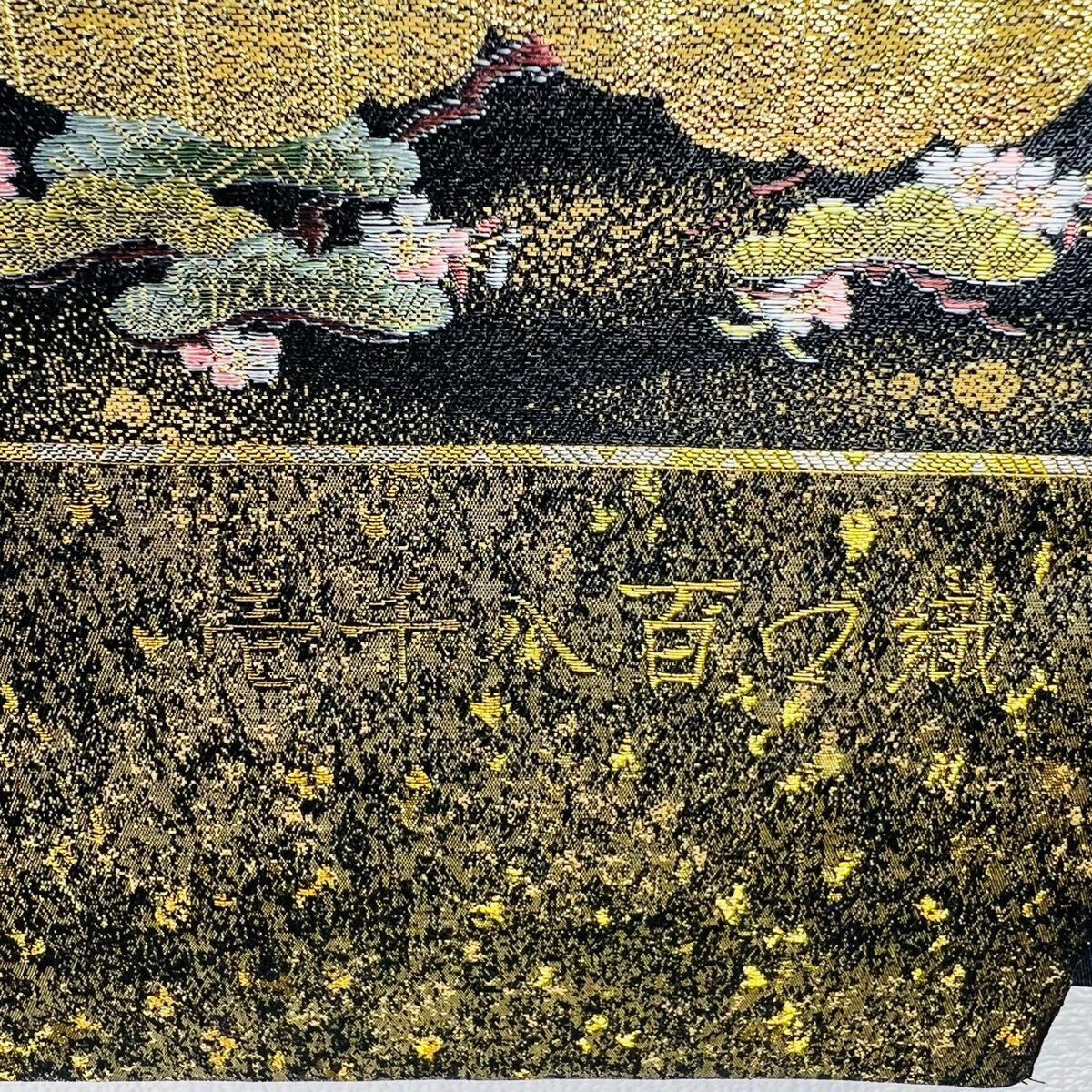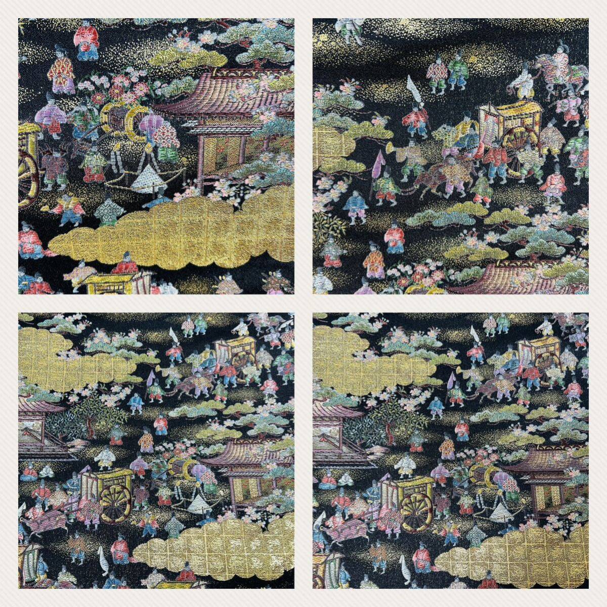 帯 洛中洛外図 壱千八百口織 西陣織 正絹 おび 刺繍 にしじんおり 金 黒 人