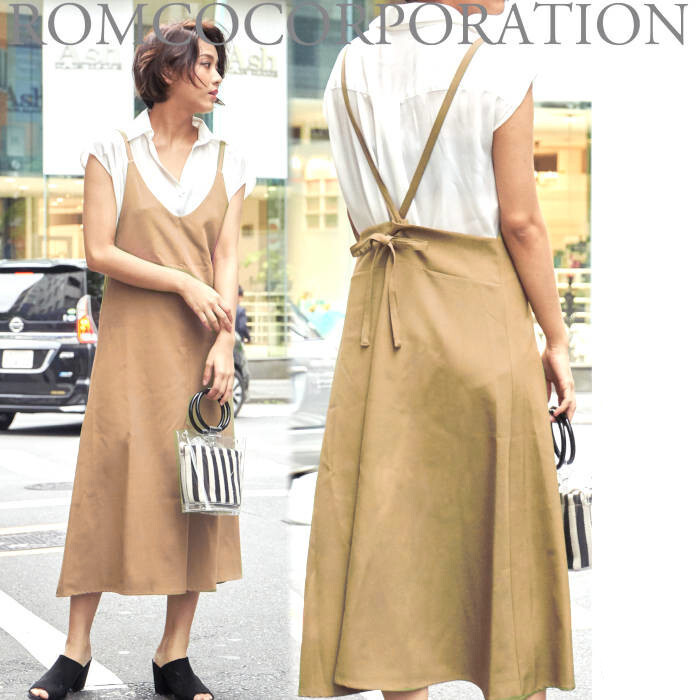 シンプルなデザインなので年齢問わず、季節も幅広くお使いいただけるキャミワンピ♪ 肌寒い季節はニットと、暑い季節はTシャツやレースのノースリーブを合わせて。1年中大活躍。 リボンになる紐は肩紐になっているので丈感を調整することも可能。 とろみ感があり、落ち感のある素材なので綺麗に体に落ち着いてくれるのも嬉しい。 |