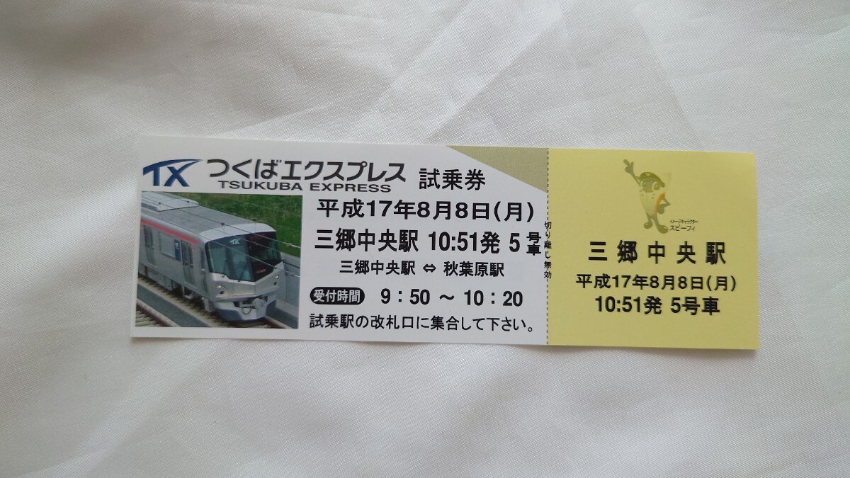 ▼つくばエクスプレス▼試乗券 三郷中央駅▼平成17年