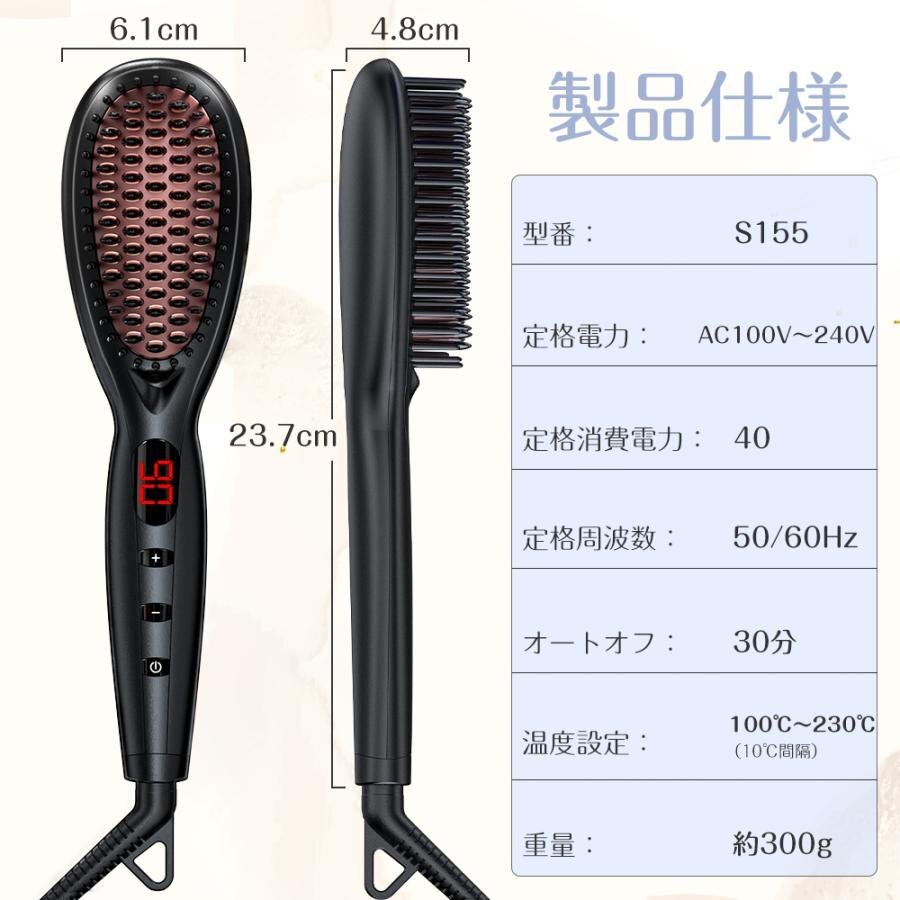 ヘアアイロン ヘアアイロンブラシ ストレートアイロン MAX230℃ 女性 プレゼント マイナスイオン 携帯用 旅行用
