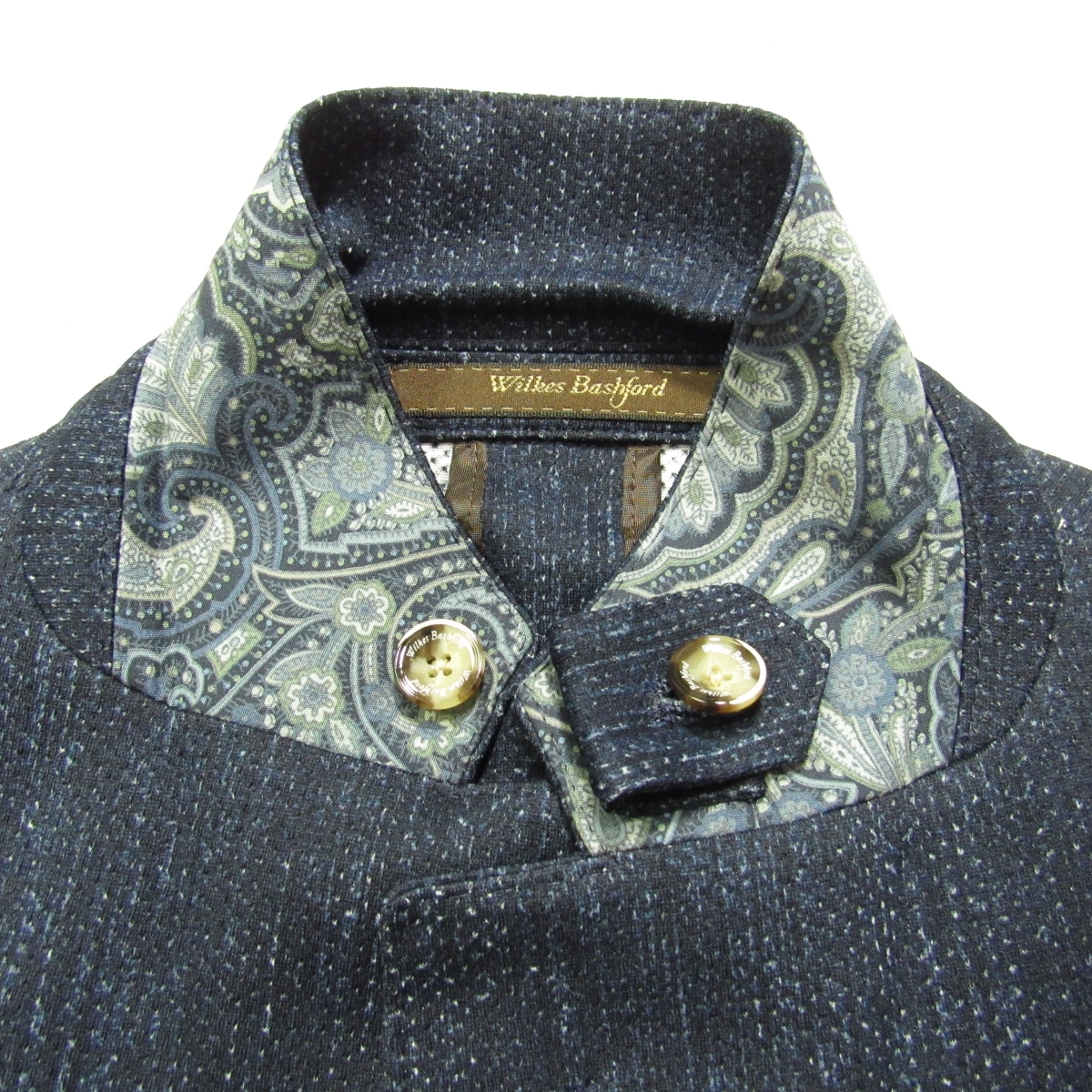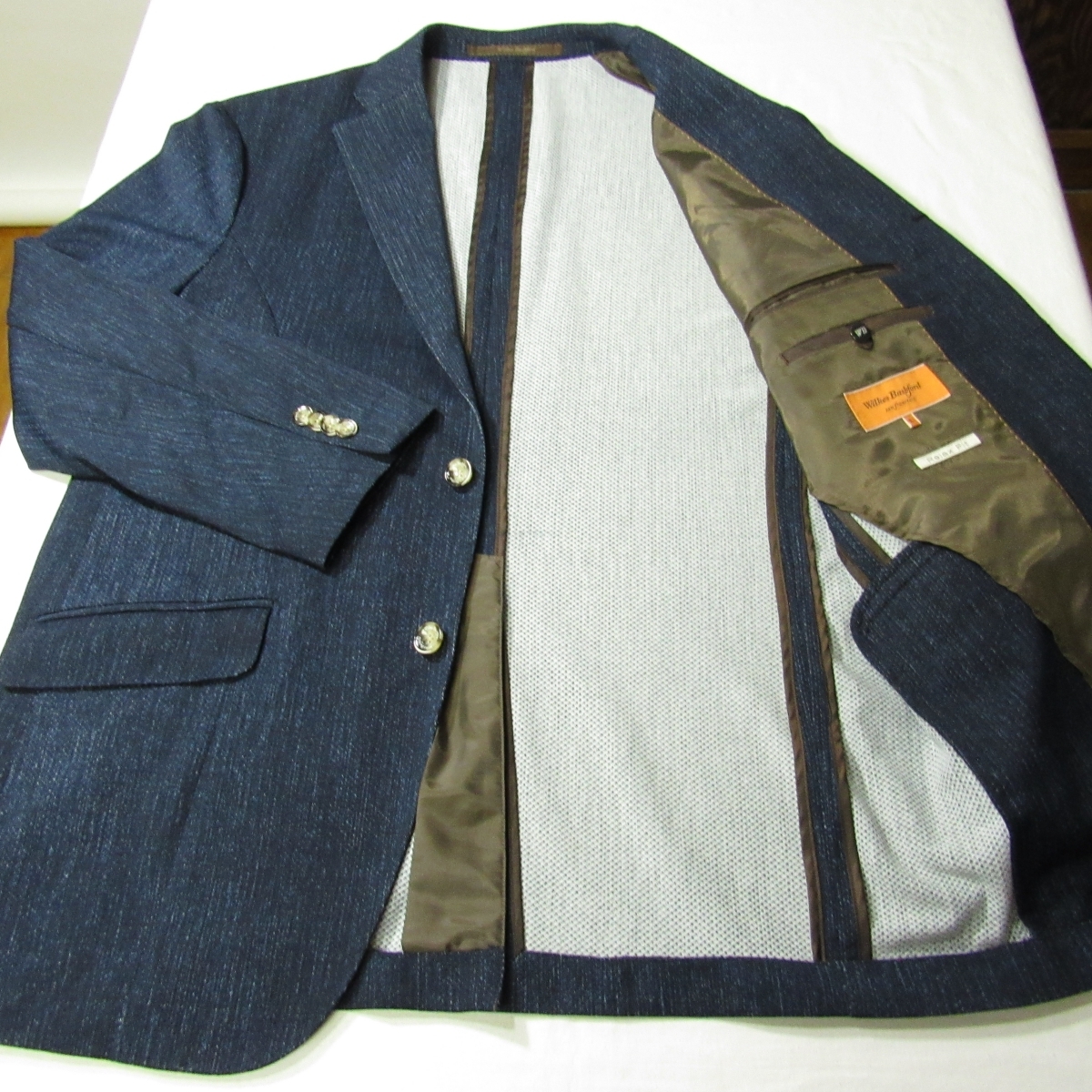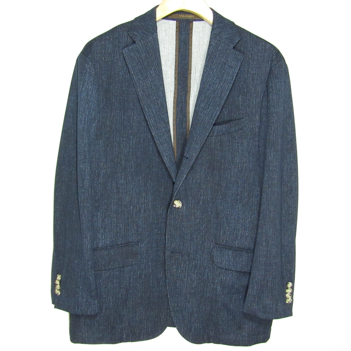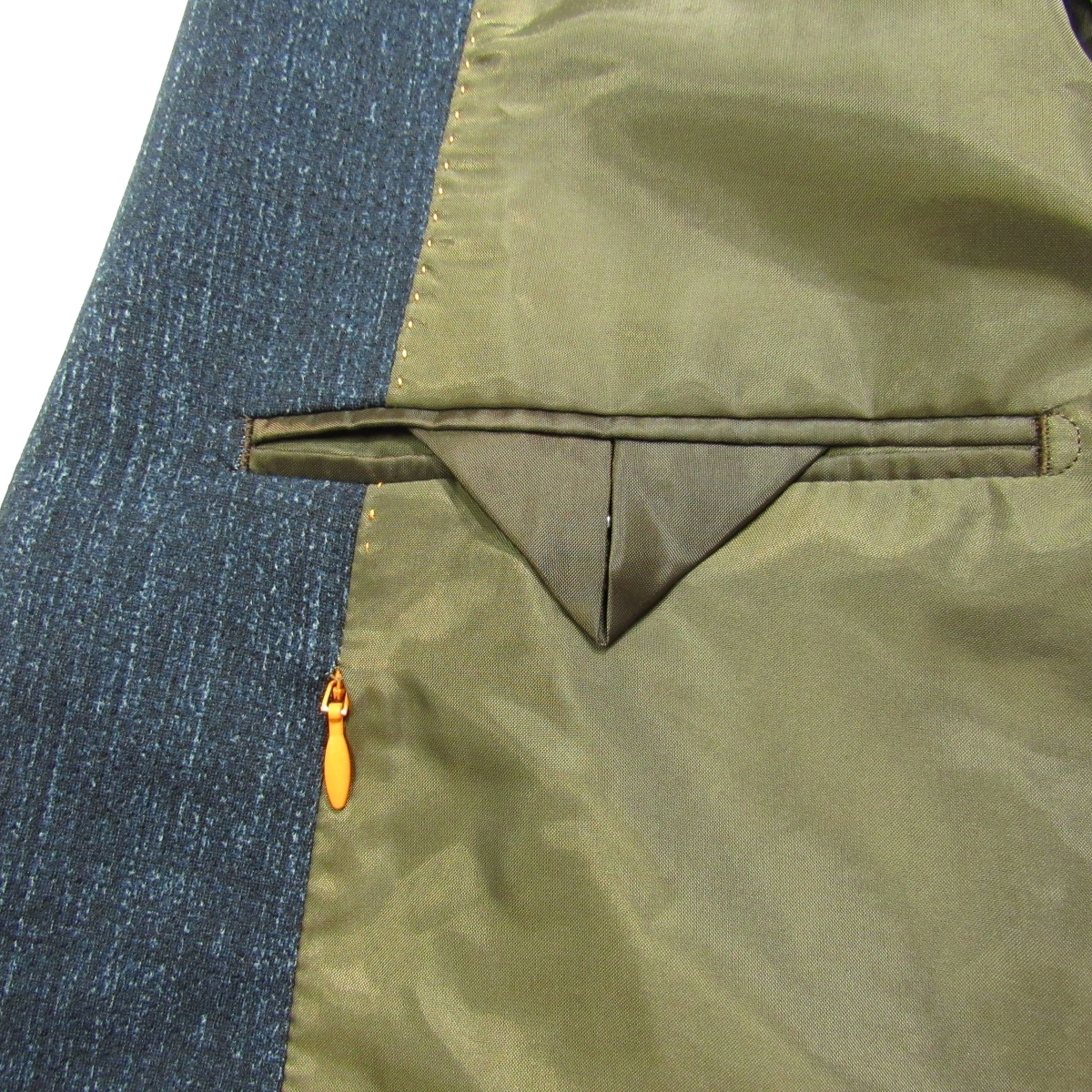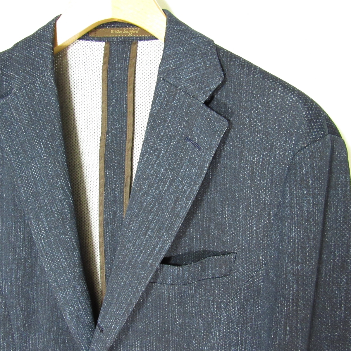 上質なビジネス&カジュアルスタイルを提案する、大手紳士服店タカキューが展開する大人向けのブランド「Wilkes Bashford」 生地は通気性の良さそうな清涼感のある春夏素材です。 全方向にストレッチ性のある生地です。 裏地は背抜きで袖裏地なし、肩パッドなしの軽快な仕立てとなっております。 シルエットを損ねることなく、ゆったりとした着心地の良さを実現した「Relax Fit」 内ポケットが豊富に備え付けられておりますので旅行などにも便利です。 ボタンはブランド刻印入りです。 胸ポケットの中の生地を出してチーフのようにしてもよいかもしれません。 メンズ・ストレッチテーラードジャケット/春夏 型番:HECI-91210WB シングル段返り3つボタン/センターベント/裏地-背抜き・袖裏地なし/肩パッドなし/腰ハッキングポケット |
