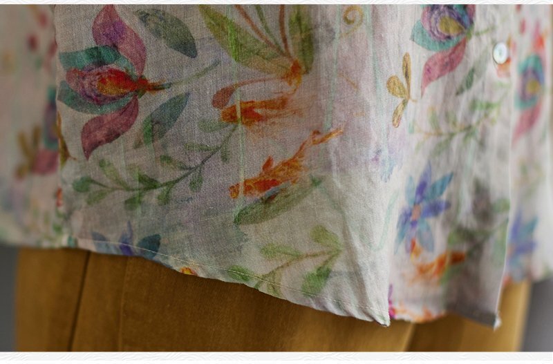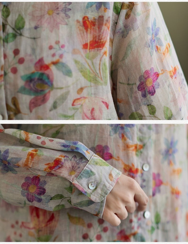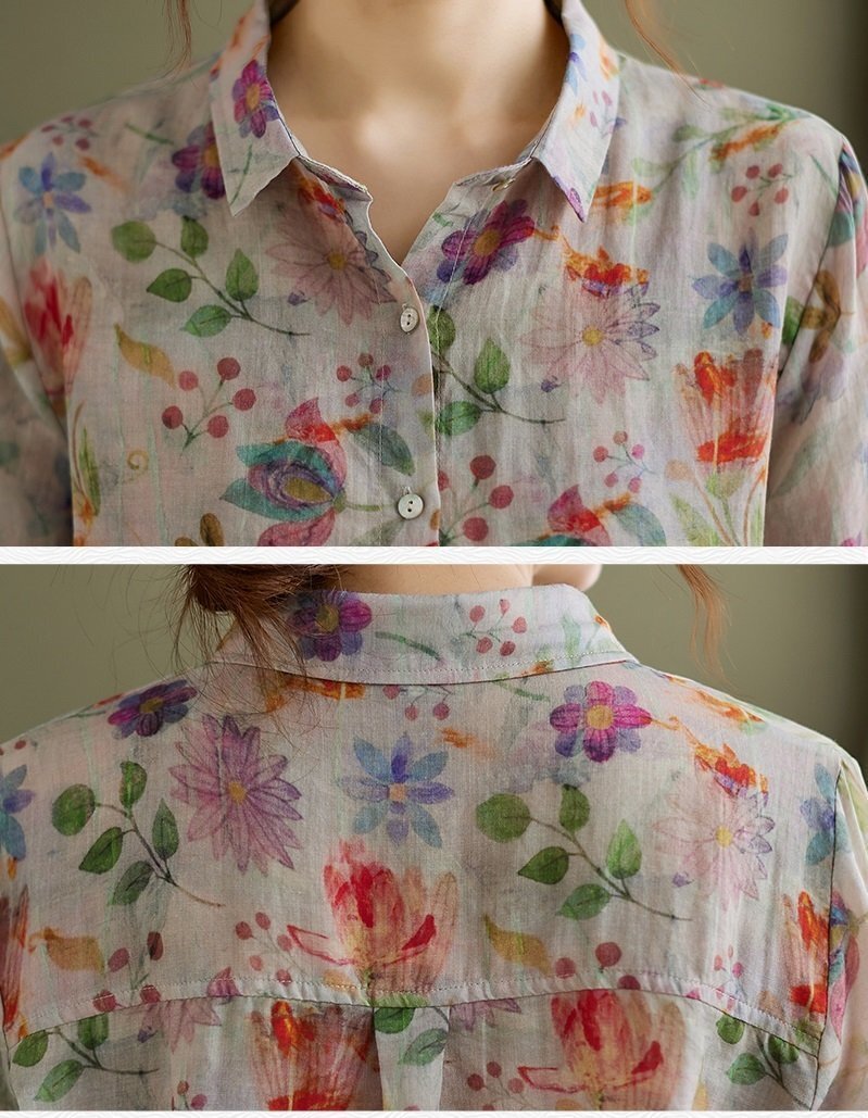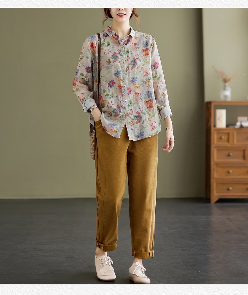 LRM2443★秋新作♪おしゃれ20304050代♪カジュアル♪花柄♪可愛い♪綿麻♪長袖♪シャツブラウス♪L~XXLサイズ