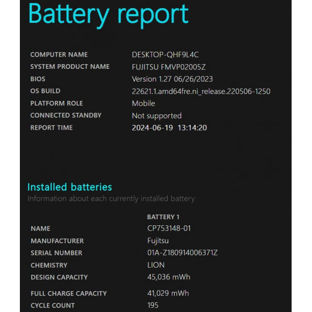 バッテリー約95%残存と超良好で、長時間のバッテリー駆動OK!長くご愛用いただける一台です!