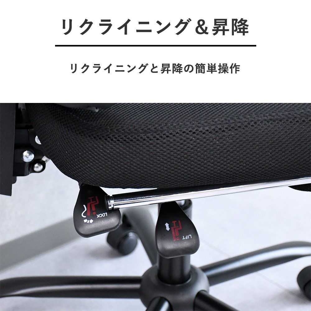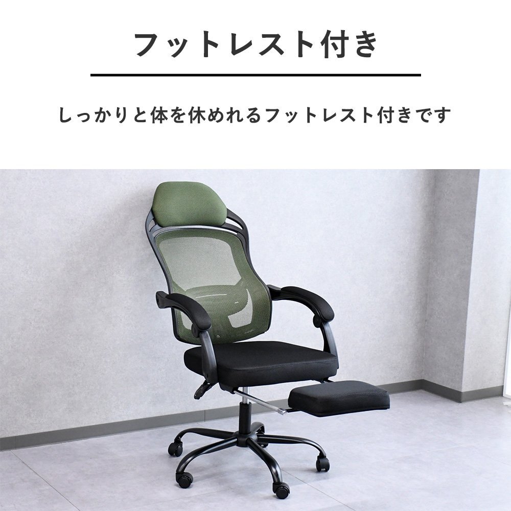 メッシュ素材リクライニング フットレスト事務チェアです。 仕様詳細は写真を参照お願いします。 |