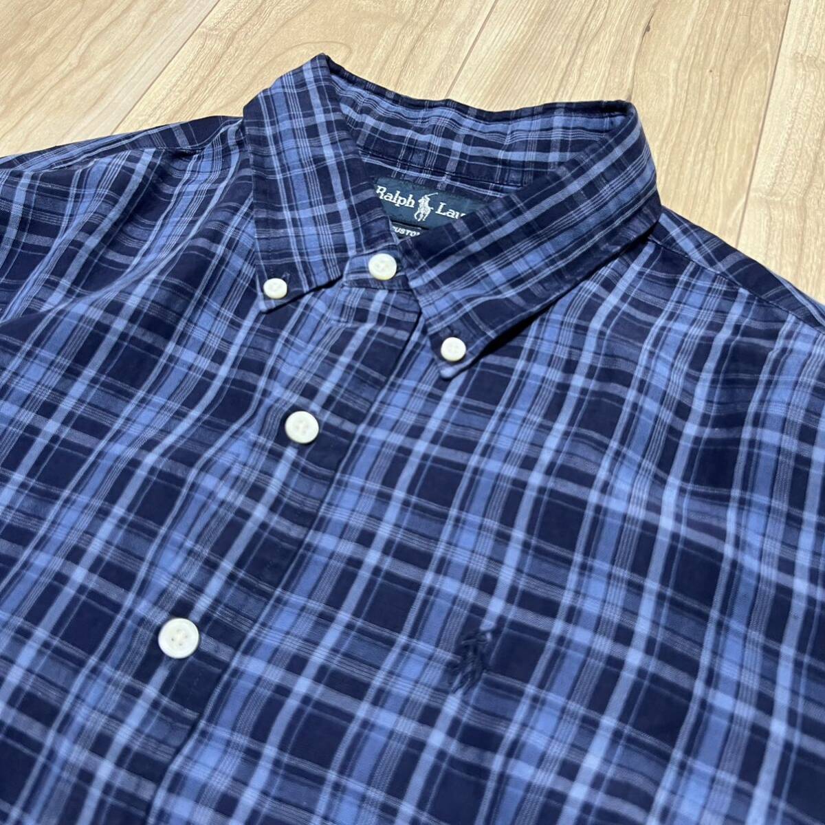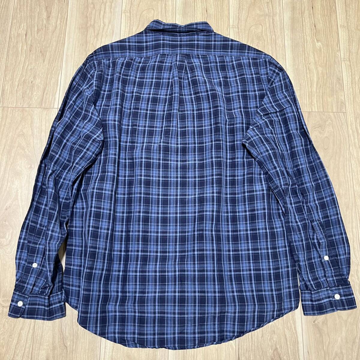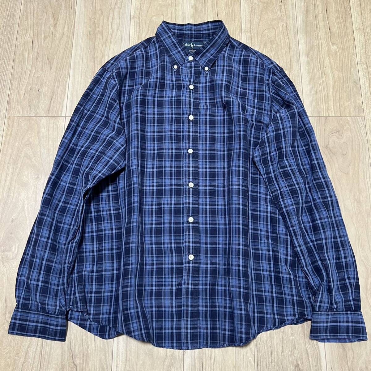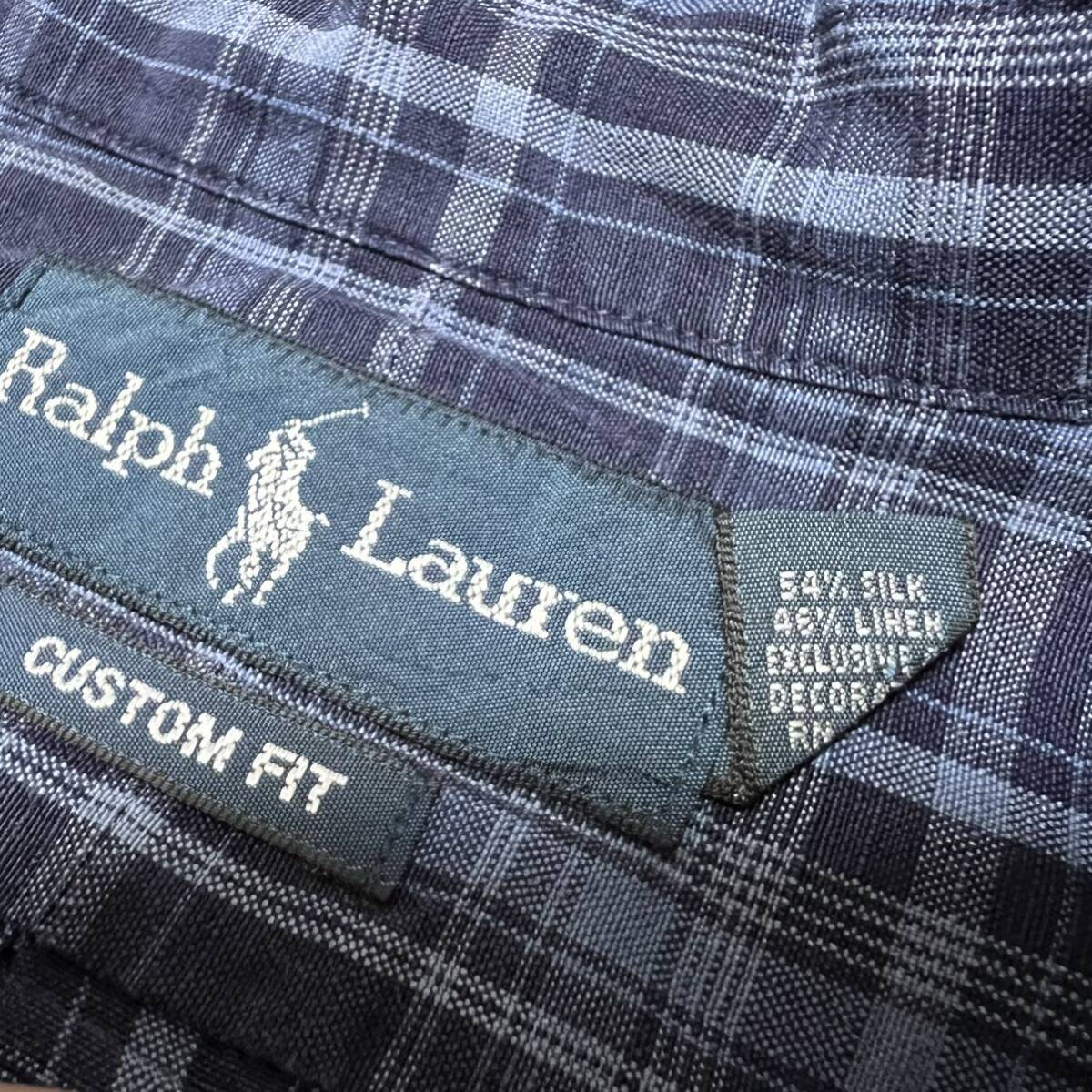 ★送料360円★リネン×シルク 希少 Ralph Lauren ラルフローレン 長袖シャツ 絹 麻 チェック柄 メンズ ネイビー系 サイズXL R-6123