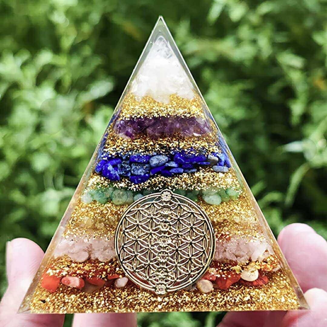 オルゴナイト 6層 ゴールド グラデーション ストーン チャクラ 幸運 パワー 石 金箔 有機物 無機物 ピラミッド 三角 三角形 樹脂