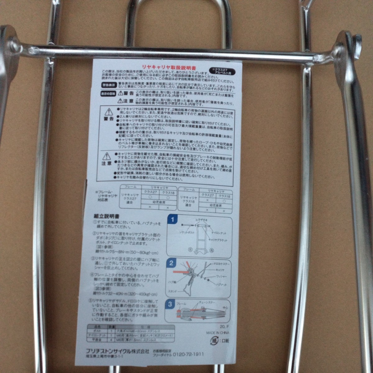 ブリヂストン 純正パーツ アルベルト 26インチ用  クラス27リヤキャリヤ  ステンレス キャリア  CA627SUA