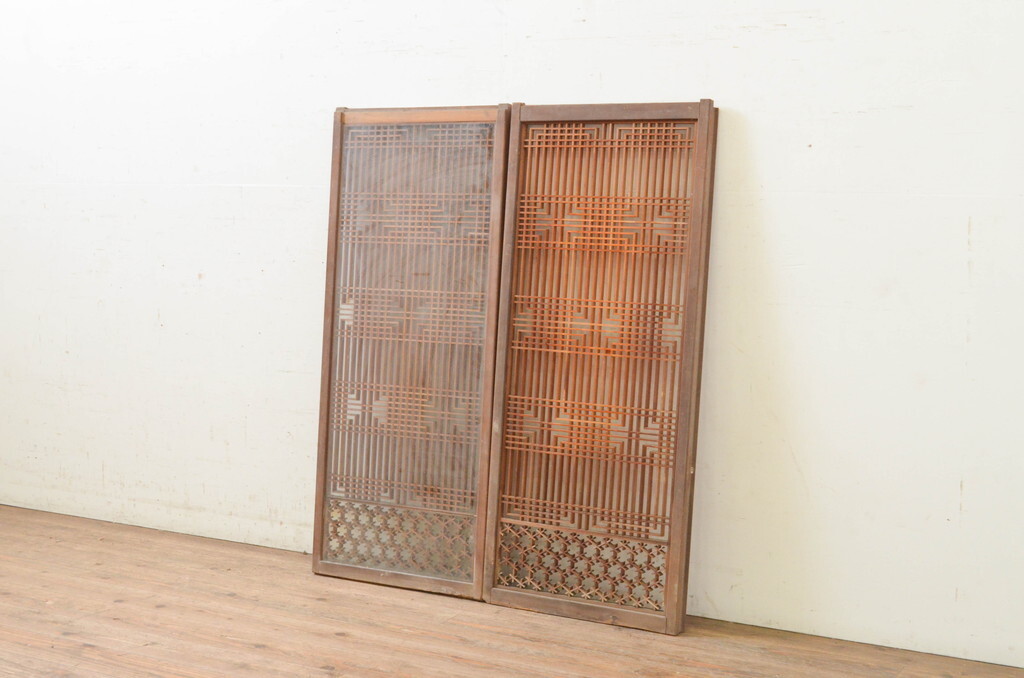 R-070991 アンティーク建具 両面ガラス 和モダンな空間を演出する組子入り書院戸2枚セット(引き戸、ガラス戸、窓)(R-070991)