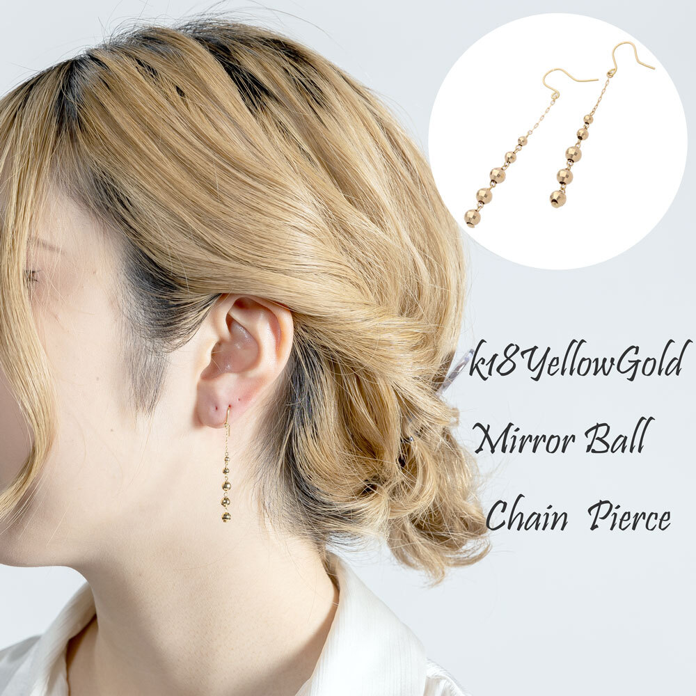 商品コード ep702 発送は2週間ほどです 動くたびに揺れる、ミラーボールの煌めきがアクセント。まるで金の果実のような可愛さとみずみずしさのあるシンプルピアス。キラキラ輝くミラーボールをアメリカン(チェーン)ピアスの先にセットしました。また、ポスト部分を長めの地金にしてシャープなスタイリッシュさもプラス。ゆらゆら揺れるアメリカン(チェーン)ピアスは耳元を華やかに演出して、表情をワントーン明るく見せてくれます。◆商品詳細材質K18イエローゴールド宝石名なし大きさ全長約47mm (フックピアスなし約40mm)ミラーボール 2.4mm×2pc 2.8mm×2pc 3.8mm×6pc チェーンアズキチェーン約10mm×2備考材質の刻印入りお届け約2週間(当店営業日)WAS-131お誕生日 プレゼント 結婚記念日 クリスマス プレゼント ホワイトデー 結婚式 卒業式 入学式 新生活 母の日 成人のお祝い 女性への贈り物に最適です。彼女 恋人へのプロポーズにも喜ばれるジュエリーをとりそろえております。