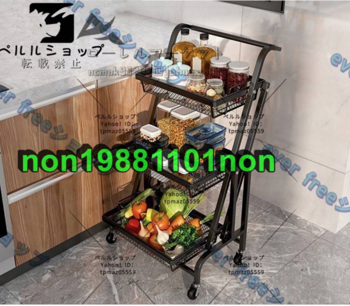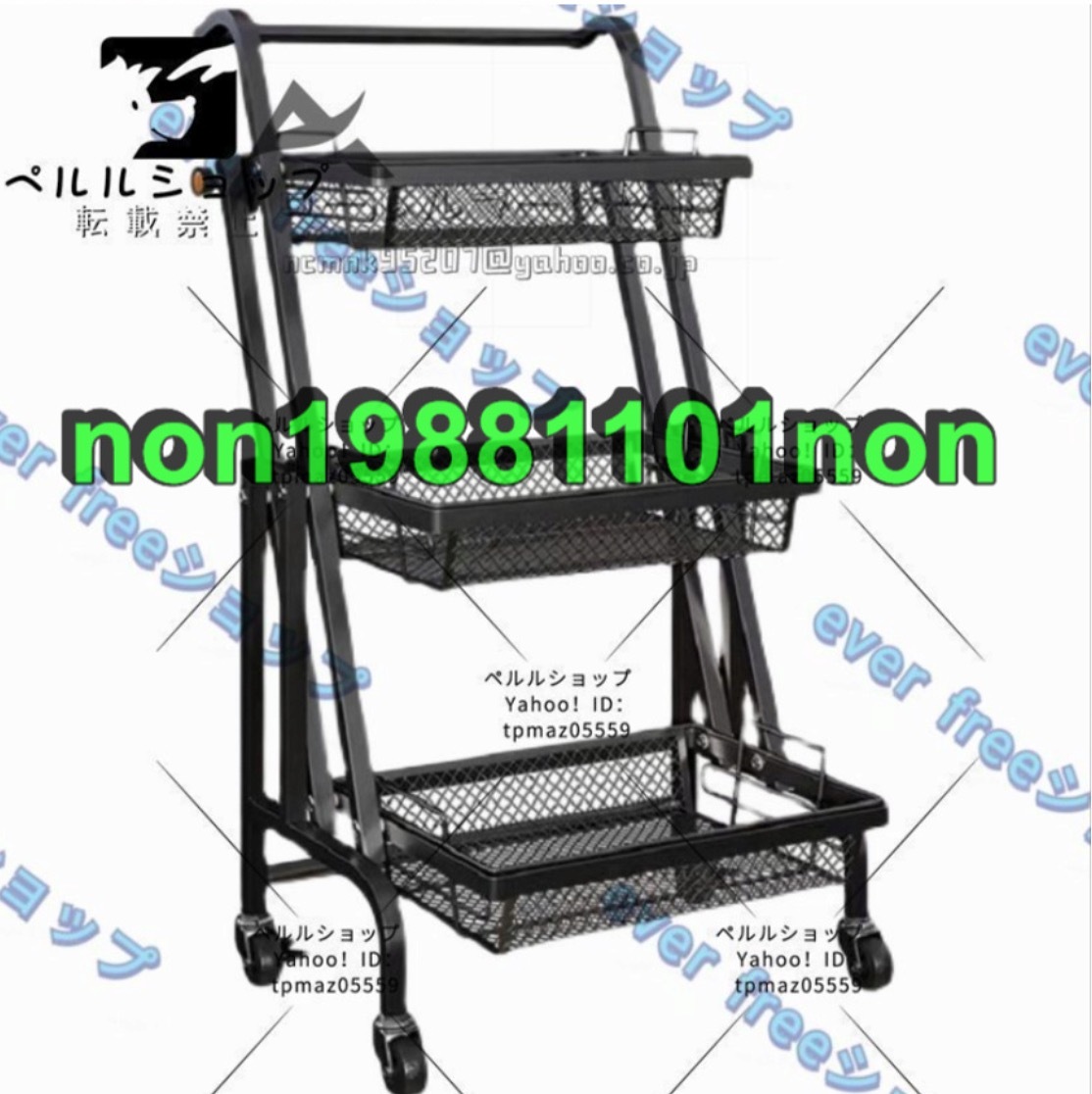 トロリー ワゴン 収納カートワゴン 折りたたみ マットカラー キッチン ラック トロリー 3段 キャスター付き