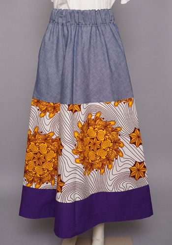 西アフリカのパーニュを使用し、ボゴランマーケットで丁寧に縫製したカラフルで可愛いフレアスカートです。