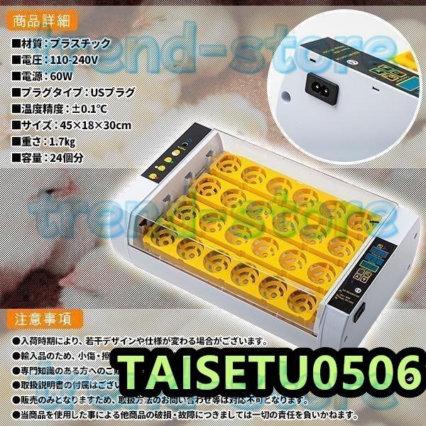 24枚小型自動孵卵器 卵インキュベーター 自動転卵式 温湿度デジタル表示 アラーム 簡単に取り扱い 省エネ ふ卵器 鶏 うずら 鳥類