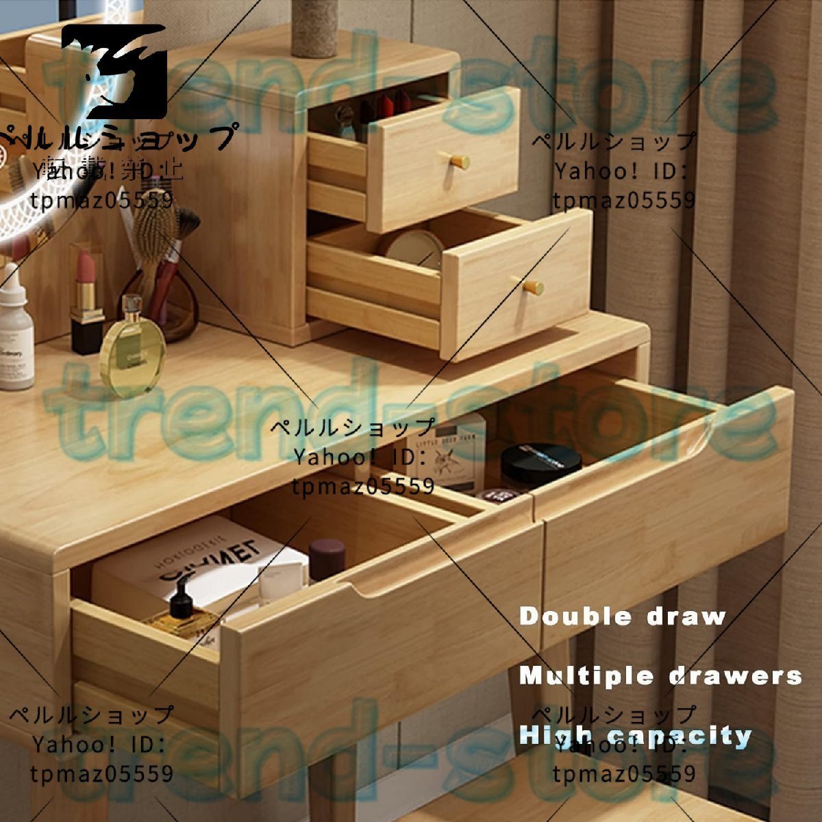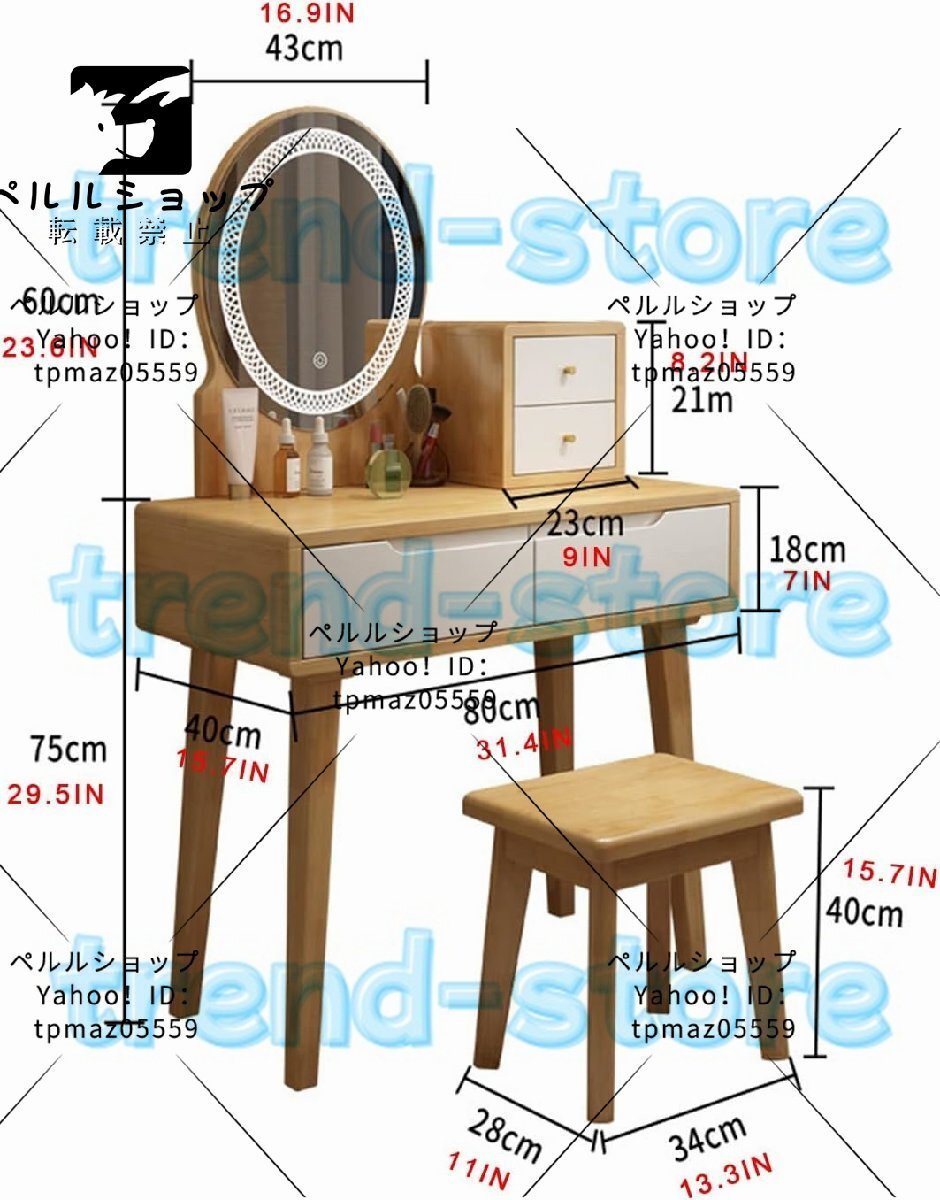 特別なLED自然光、冷たい光、暖かい光の3色のライトストリップ、画面のボタンに触れて切り替え、あなたの美しさを照らします。 滑らかな表面、ラバーウッド製、環境に優しい水性塗料、収納スペースを高めた二重引き出しテーブル、イヤリング、口紅、マスク、その他の小さなアイテムを保管できます。 モダンさとスタイルを組み合わせたこの美しいドレッサーは、寝室で最も価値のある家具です。