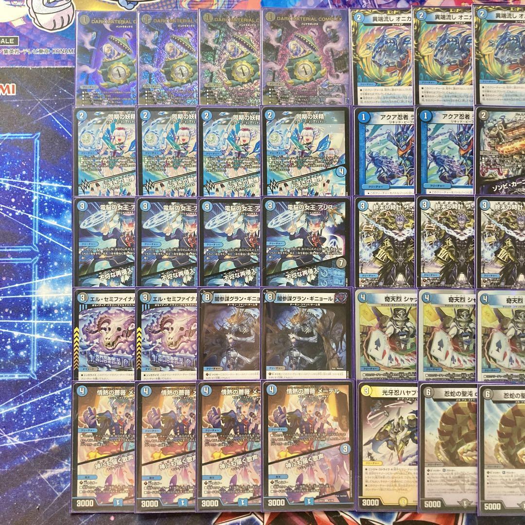 ◆環境デッキの青黒COMPLEXデッキ! ◆COMPLEXとメタクリーチャーを展開しながら能力を開放させたCOMPLEXで相手をトリガーを寄せ付けず一気に勝負を決める ◆コブラ4、同期の妖精など必須パーツや必要パーツを揃えておりまた、優勝構築をベースにした環境上位の構築 ☆インナースリーブとオーバースリーブの二重スリーブセット ↓↓↓その他デッキはこちら #かしこまデュエマデッキ #かしこまデュエマ環境デッキ ■メインデッキ 4枚 《DARK MATERIAL COMPLEX》 4枚 《異端流しオニカマス》 4枚 《同期の妖精/ド浮きの動悸》 2枚 《アクア忍者 ライヤ》 2枚 《学校男/ゾンビ・カーニバル》 4枚 《電脳の女王 アリス/不埒な再侵入》 4枚 《終末の時計 ザ・クロック》 2枚 《エル・セミファイナルのマスク》 2枚 《闇参謀グラン・ギニョール》 4枚 《奇天烈 シャッフ》 4枚 《情熱の薔薇メーテル/神にも届く歌声》 1枚 《光牙忍ハヤブサマル》 3枚 《忍蛇の聖沌 c0br4》