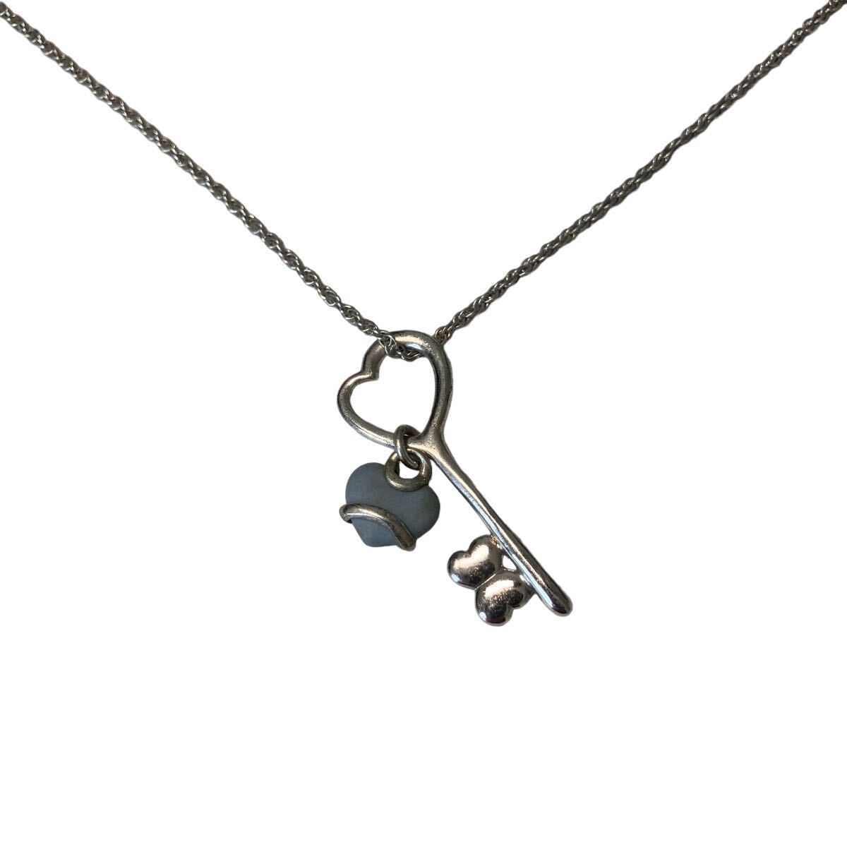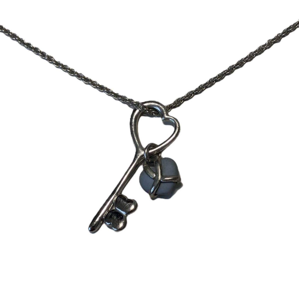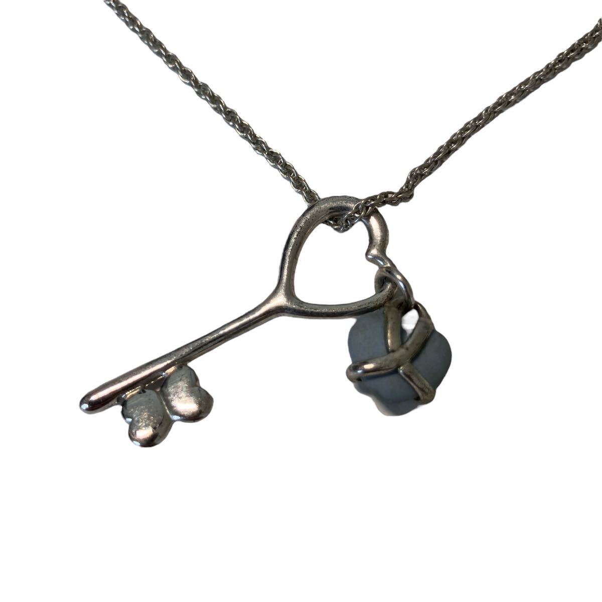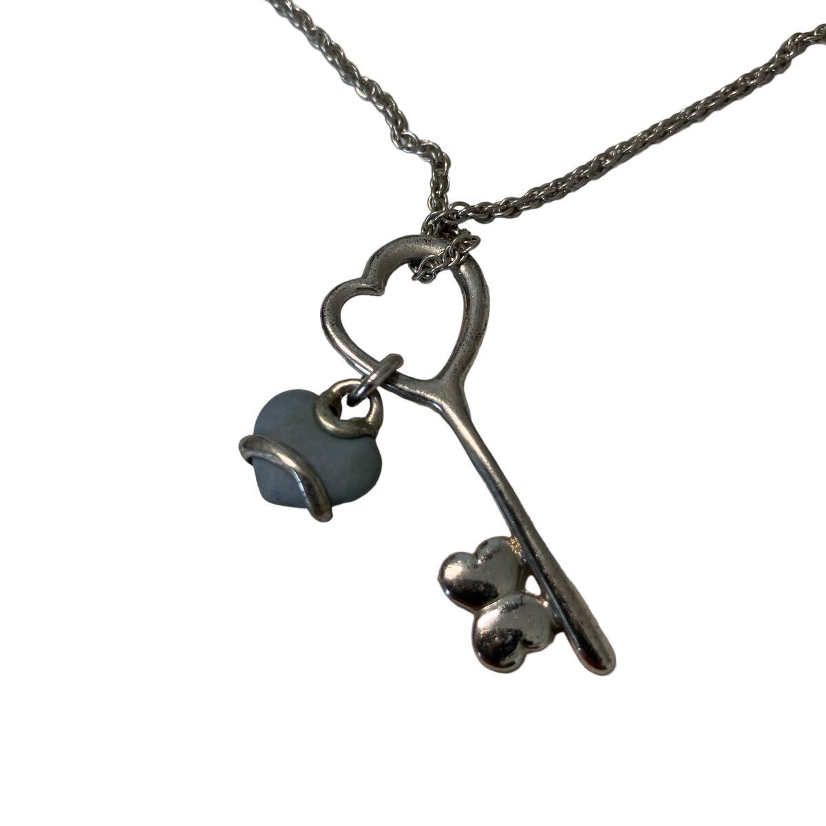 ハート型のストーンをあしらった鍵のペンダントヘッドがとってもかわいい一品です。
