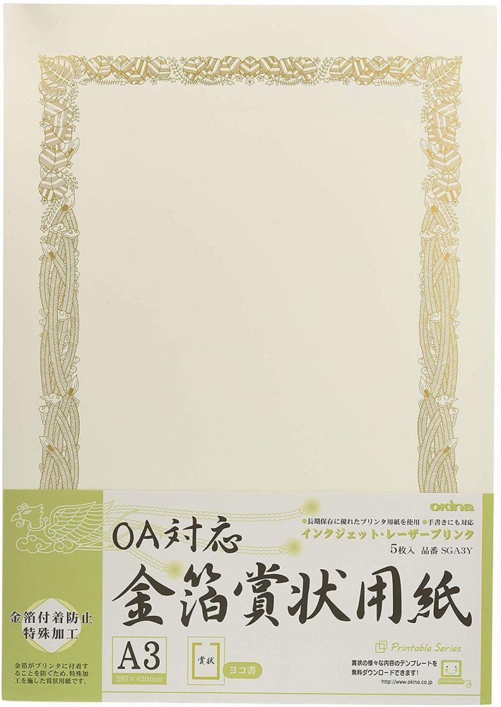 コピー機、インクジェットプリンタに対応の高級賞状用紙。毛筆などの手書きやオフセット印刷にも対応。