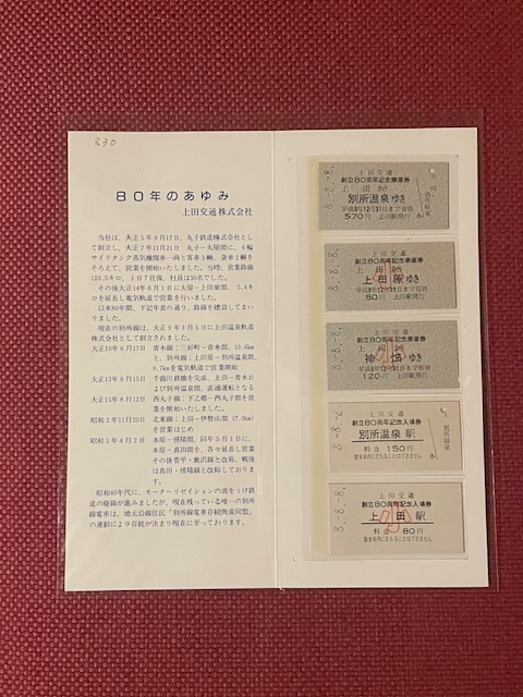 上田交通 創立80周年 記念入場券 (管理番号45-11)