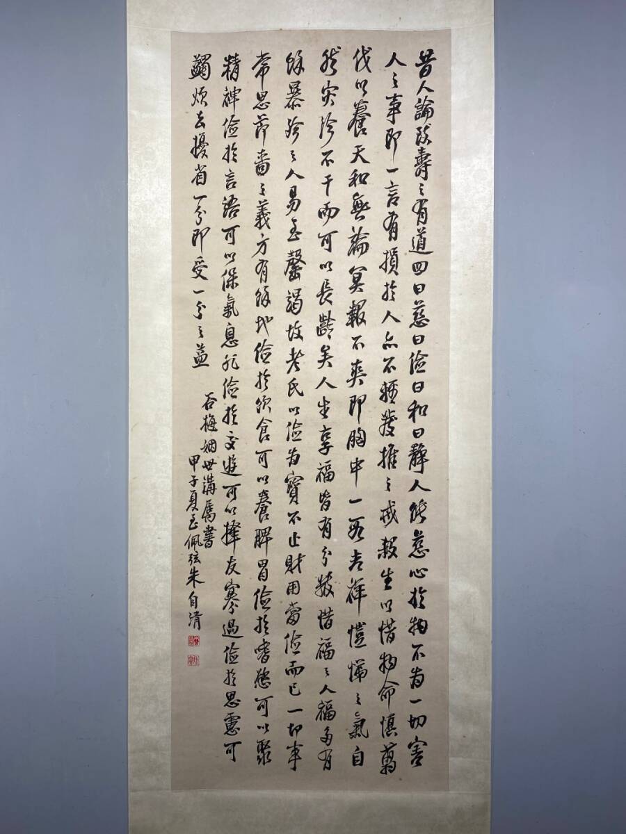 中国書画 掛け軸 中国・近現代 朱自清書 「書道」 紙本立軸 書道巻物 真筆逸品 肉筆保証 唐物古画 LOT-3679 長幅133×49 cm | |||