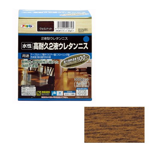 ●用途:木質フロア(土足歩行部を除く)・木質テーブルの天面。屋内のドア・テーブル・家具などの木製品。※絶えず水がかかったり水につかるところや、いつも湿っているところには適しません。