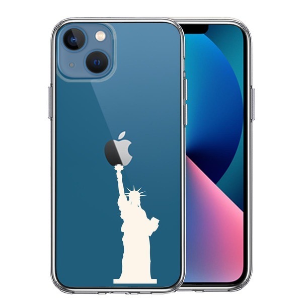 iPhone13 ケース クリア自由の女神 ホワイト スマホケース 側面ソフト 背面ハード ハイブリッド