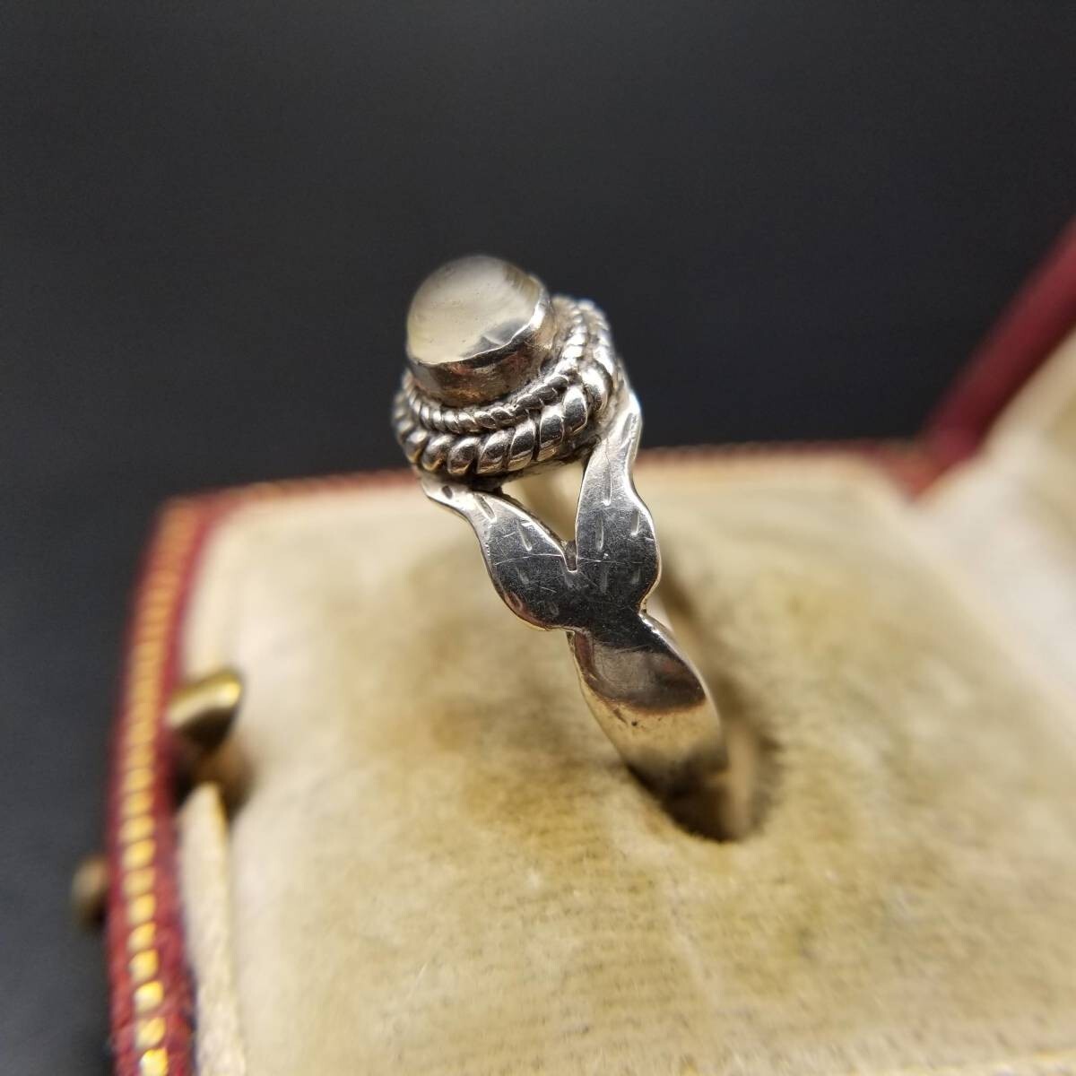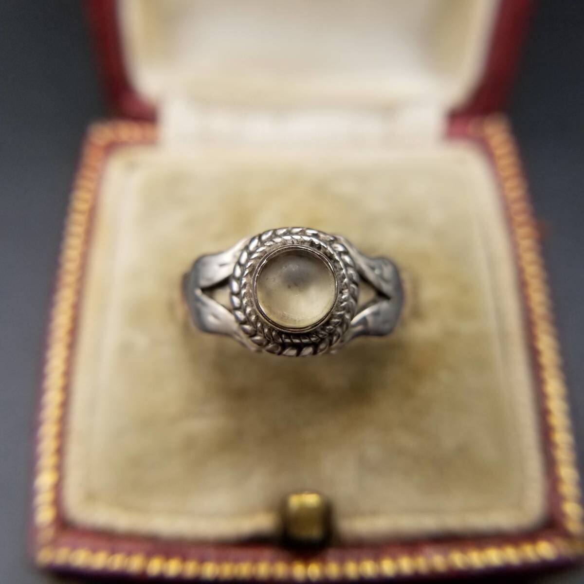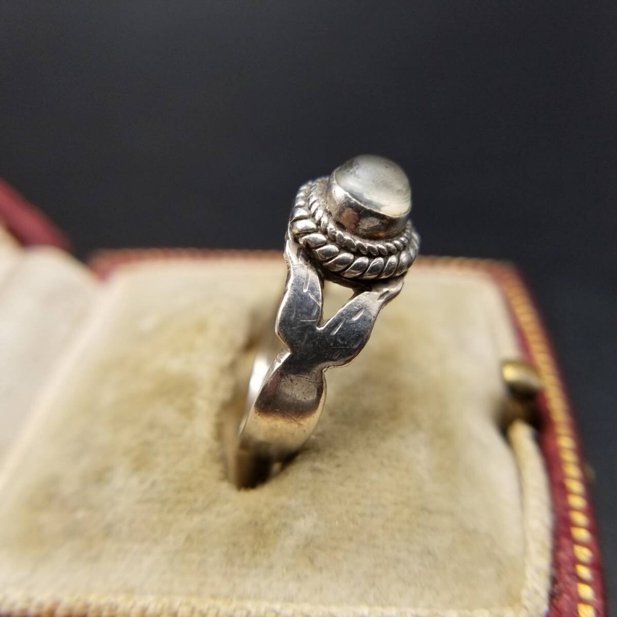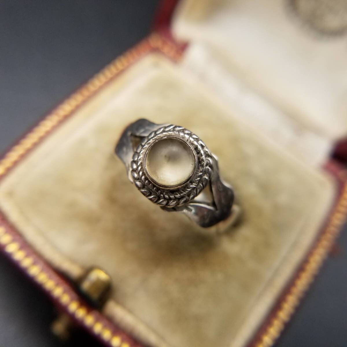 クリアガラス ラウンド ケーブリム 925 シルバー ヴィンテージ リング 銀 指輪 カボション 小ぶり サウスウェスタンジュエリー Y17-Q