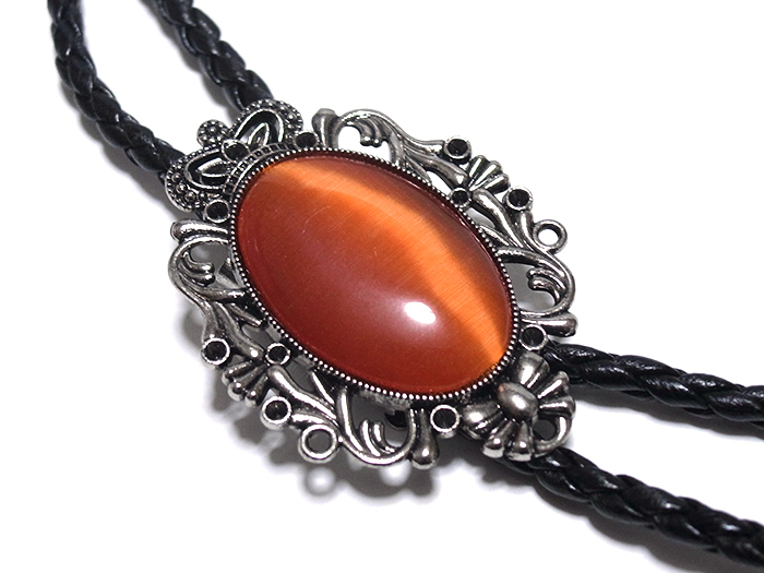 【ボロタイ★ループタイ★ロープタイ★ポーラータイ★コンチョ★アグレット】オレンジ 橙系 オーバル クラウン 装飾 bol-0096