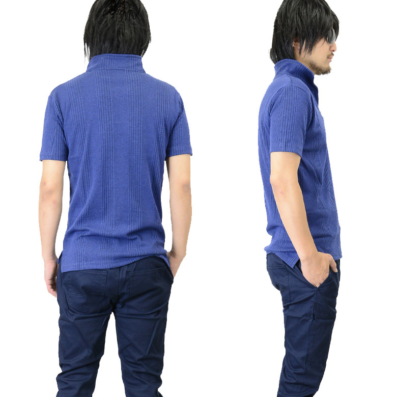 イタリアンカラー 半袖ポロシャツ ワイヤー入り ストレッチ ランダムテレコ 88-y364 トップス 新品 杢ブルー XL