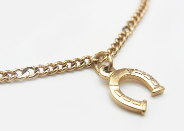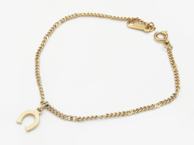 | ホースシューの小さなチャームがついたゴールドカラーのブレスレットです。 シンプルで洗練されたデザインのおしゃれなチェーンブレスレットです。 |