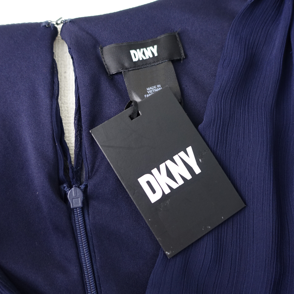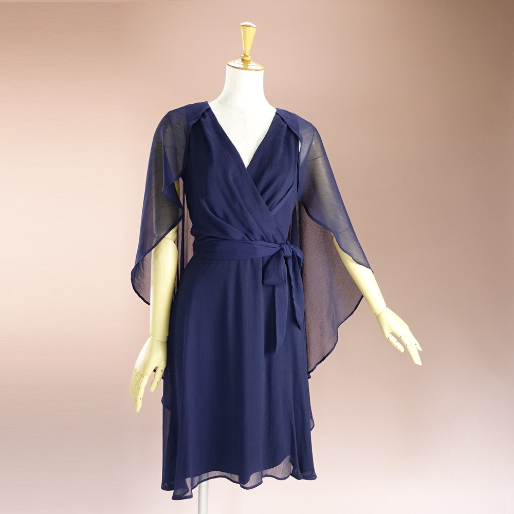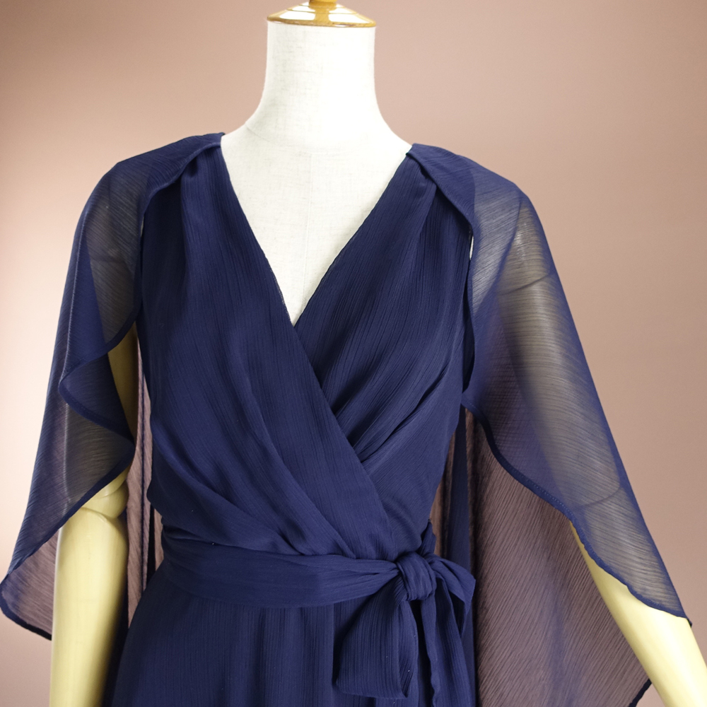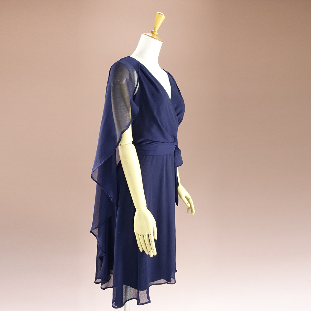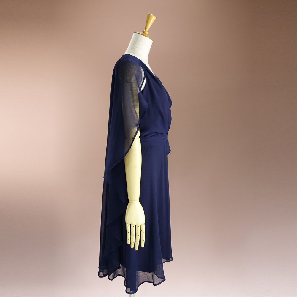 新品 DKNY 4/9号 ダナキャラン 紺 ケープ袖 シフォン ワンピース パーティドレス 結婚式 二次会 フォーマル お呼ばれ 発表会 華48H0808