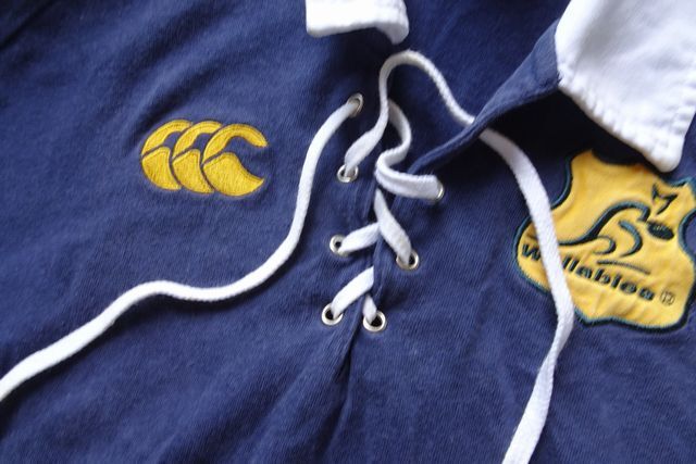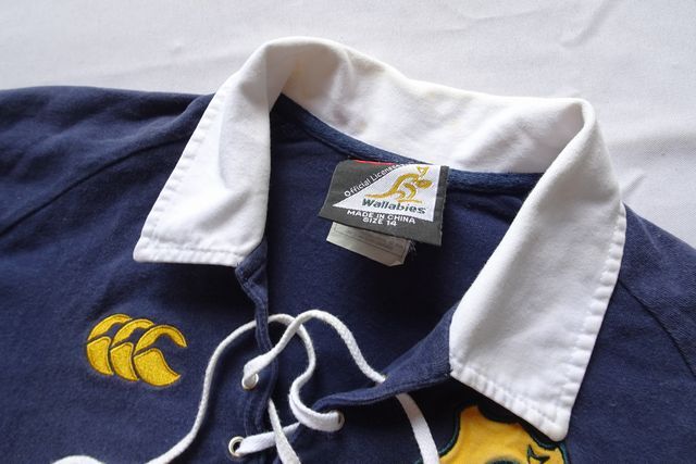 CANTERBURY/カンタベリー/ジュニア/7分袖ラガーシャツ/レースアップ/襟綾織り素材/Wallabies/ラグビー/紺/ネイビー/サイズ14(7/8R6)