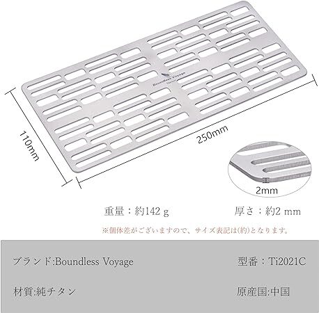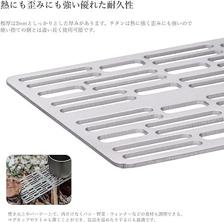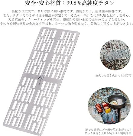 チタン製 ポータブル 焼き網 ソロキャンプ向け 軽量 ファイアーグリル BBQ バーベキュー 持ち運び便利 250x110x厚2mm