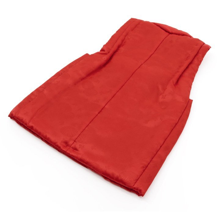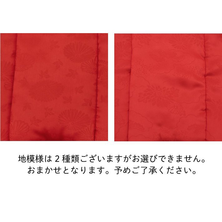商品説明 | 地模様入りの生地で地色は赤です。 無地染ですので、どんな柄の着物にも合わせやすい、七五三・被布コートです。 |